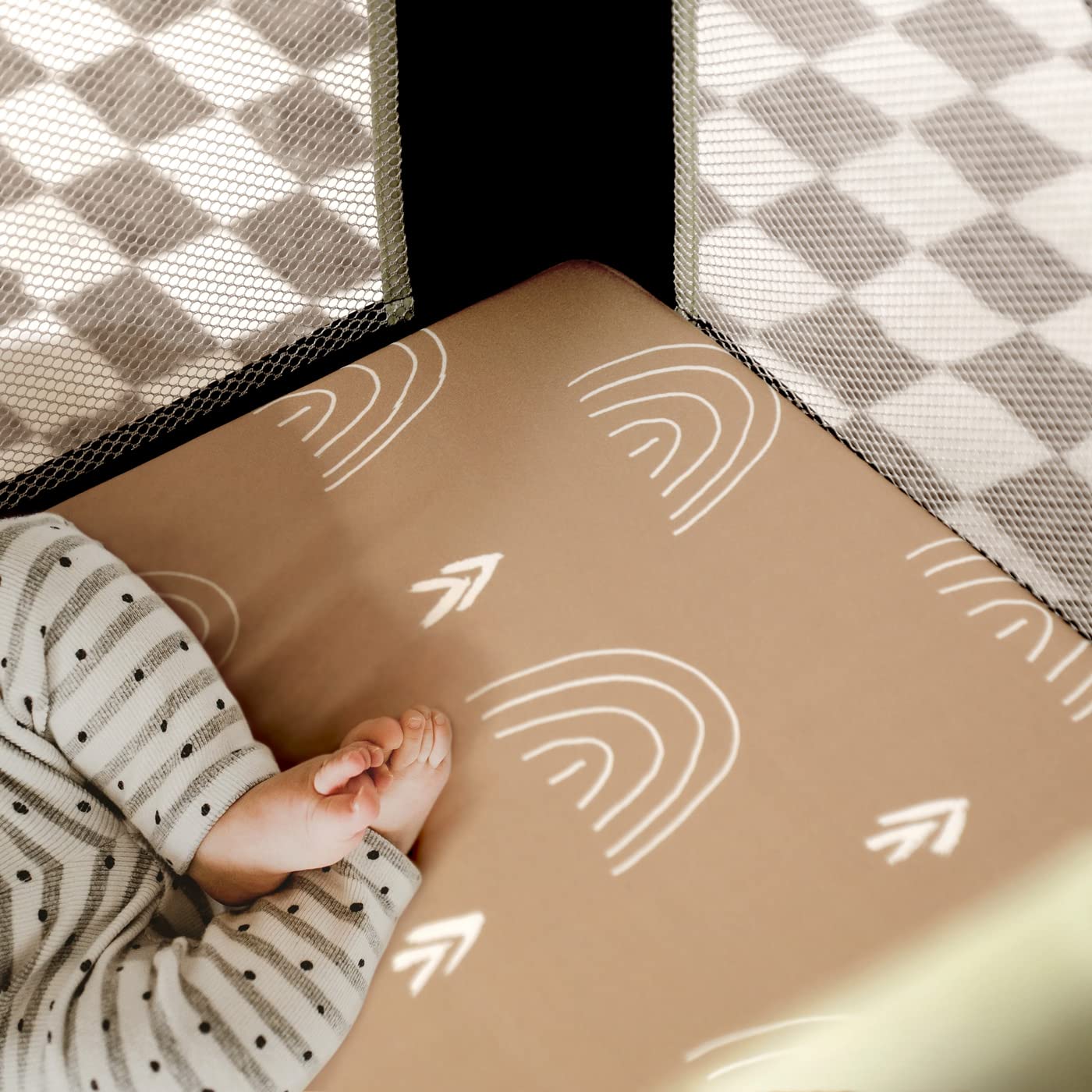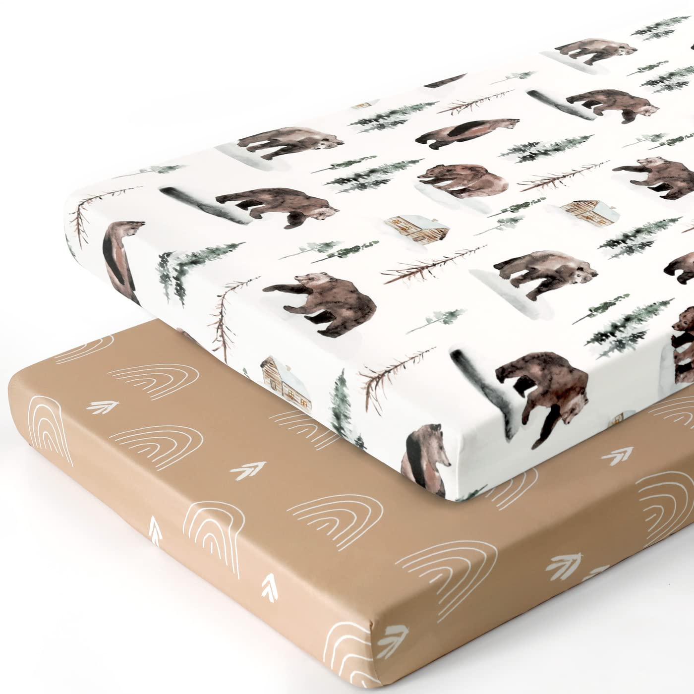 - Apple It Within Seconds: Thanks to the elastic bottom, our pack n play sheets come in a classic, the cute wild forest jungle bear/rainbow pattern that will put the finishing touches to any bedding. Make sure to give your darling a serene and calm bed to rest in.