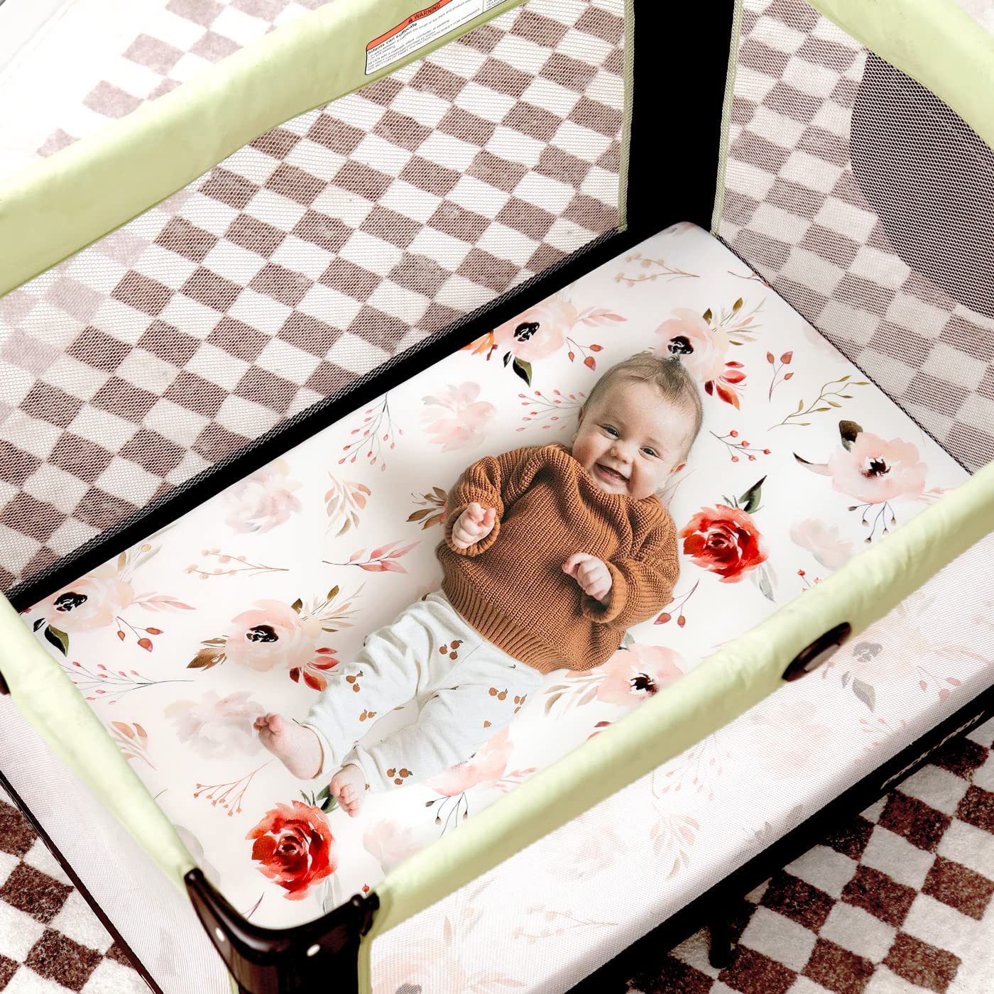 - Apple It Within Seconds: Thanks to the elastic bottom, our playpen fitted sheets come in a classic, pretty orange pink rose flora pattern that will put the finishing touches to any bedding. Make sure to give your darling a serene and calm bed to rest in.