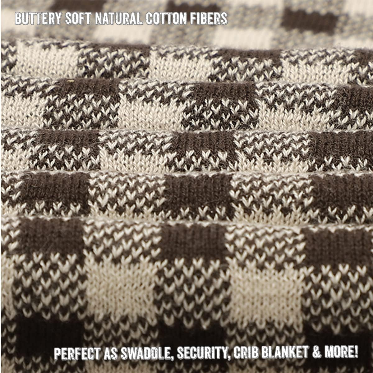 Checkered Baby Blanket for Baby Boys & Girls - 100% Soft Fine Cotton Quilt Receiving Swaddle Crib Stroller Nursery Bed Blanket Unisex Gender Neutral for Newborns Toddlers (Plaid - Mocha)