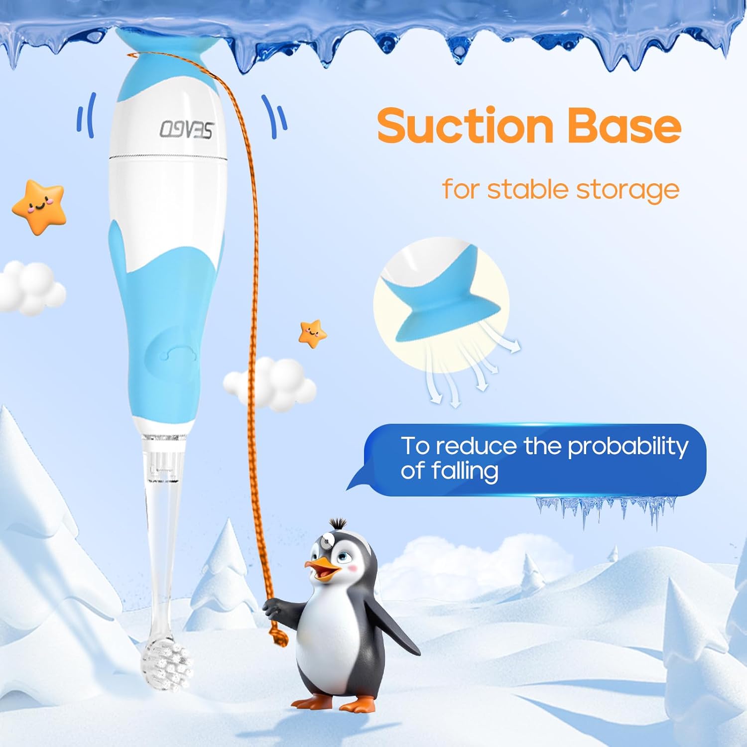 SEAGO Toddler Electric Toothbrushes for Baby Ages 0-3 Years, Baby Toothbrush with Smart Timer and Suction Base, 4 Replacement Brush Heads SG-513 (Blue-C)