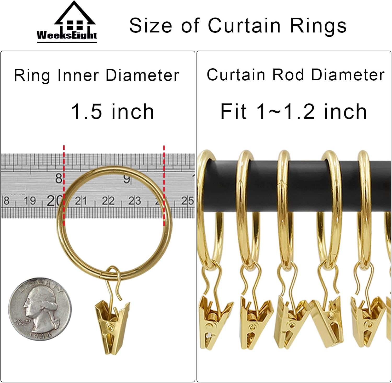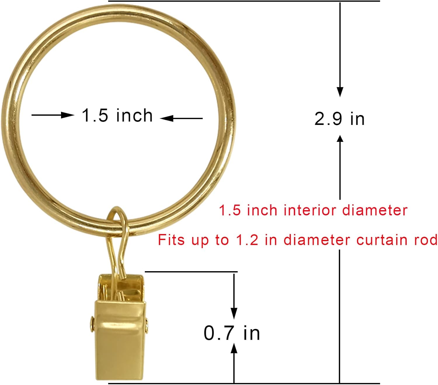 - 【Curtain Rings Slide Easily】Curtain rings eyelet inner diameter 1.5 in, drapery rings with clips for used in ones 1-1.38 in curtain rod and that’s the perfect size, the curtains slide easily, multiple times a day and function perfectly, make your life full of fun.