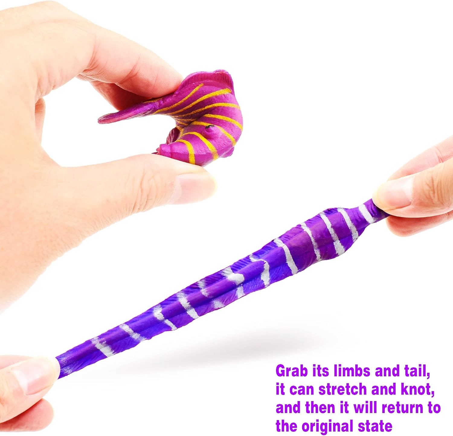 - [Elastic toy] Children can properly stretch its body and tail, or tie a knot, and then it will quickly return to its original state.