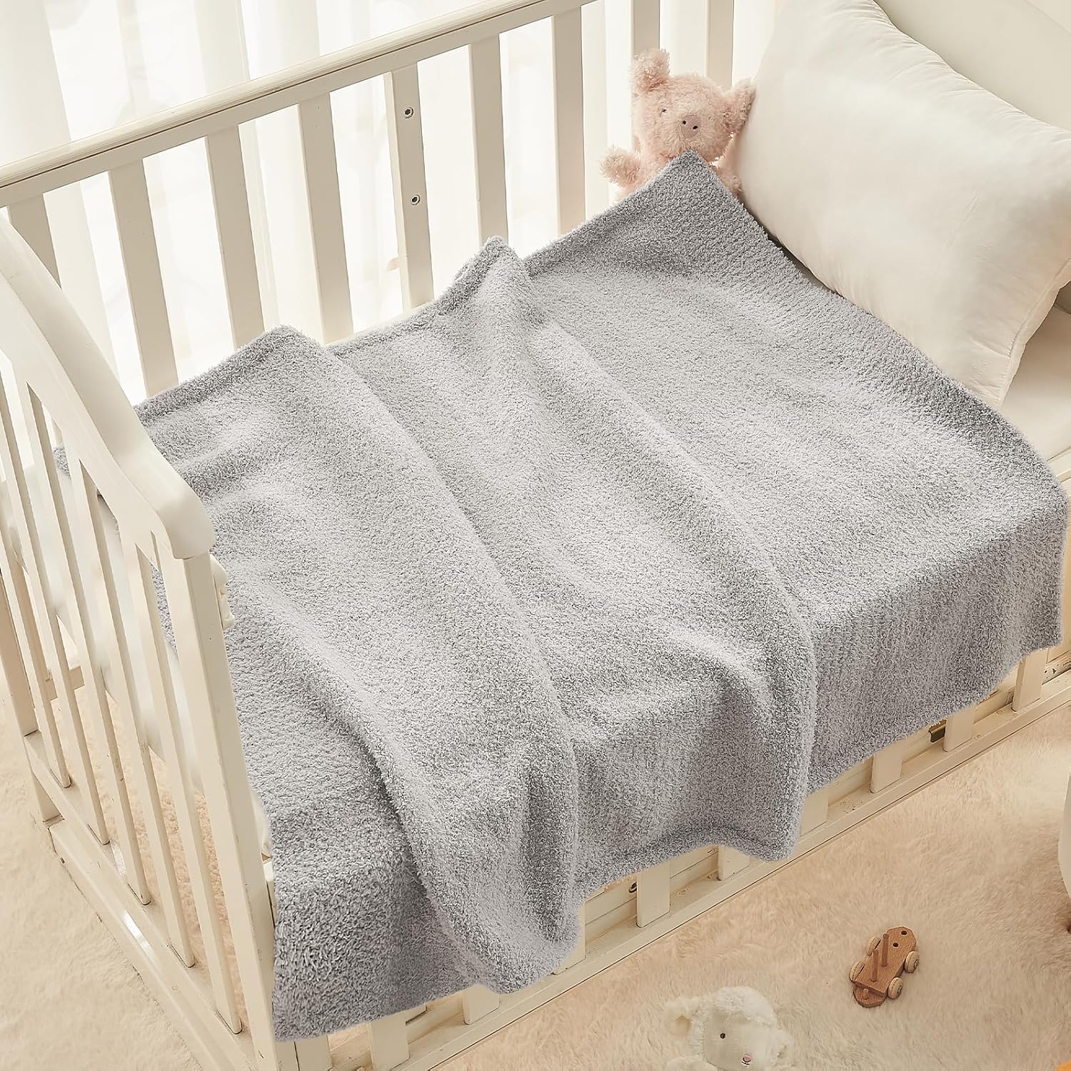CYMULA Kids Throw for Boys and Girls 30 x 40 inches, Soft Cozy Cute Swaddle Fleece Throw, Light Grey