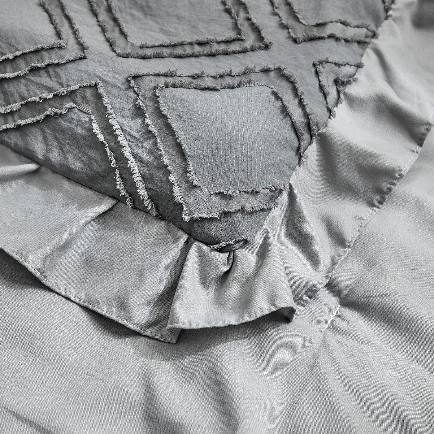 Mini Crib Bedding Set 3 Pieces Baby Boho Quilted Tufted Ruffles Comforter with Fitted Sheet and Ruffled Bed Skirt - Cute Shabby Baby Bedding Fits Mini Crib Only Gray
