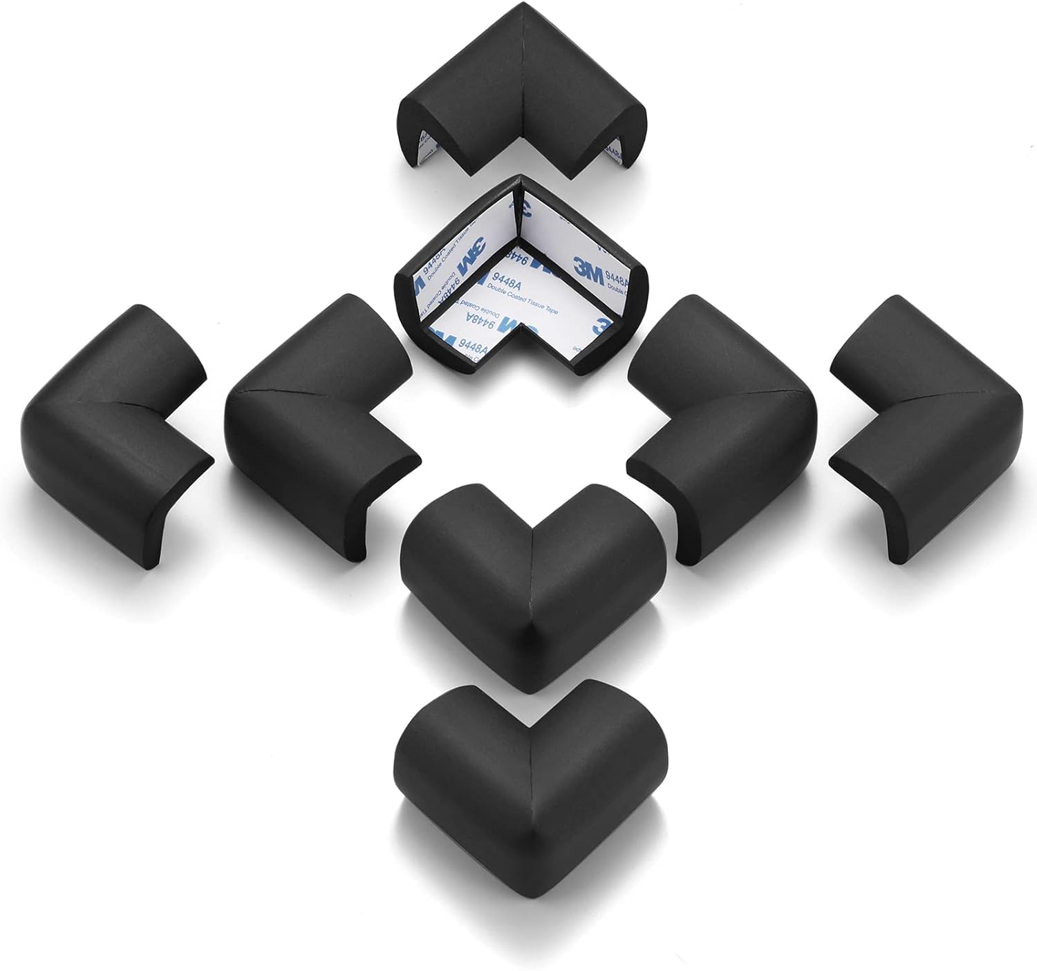 8 Pack Soft Sponge Table Corners, Corner Protector Baby, Baby Proofing Corner Guards, Pre-Taped Furniture Corner Protectors, Child Safety Furniture Bumper, Corner Protectors for furniturey, Black