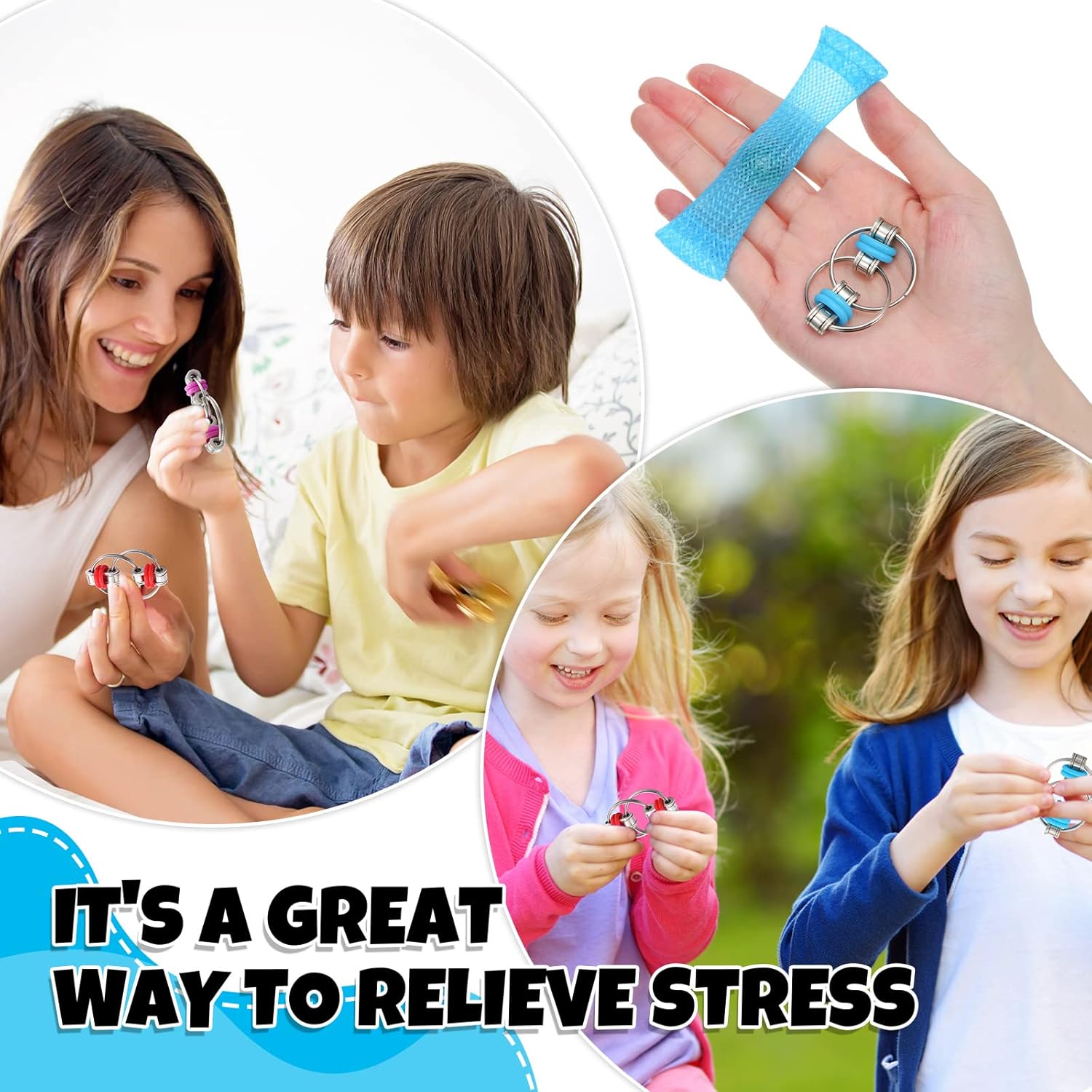 - Lightweight and Portable: these fidget toys are suitable for teens and adults, ideal for long periods of undistracted, silent fidgeting, the pressure relief chain has light weight, small size, can be carried in a pocket or bag; This fidgeting toy can relieve your tension and effectively release stress when you are stressed; The compact body is easy to carry and can be taken to the classroom, office, plane and more