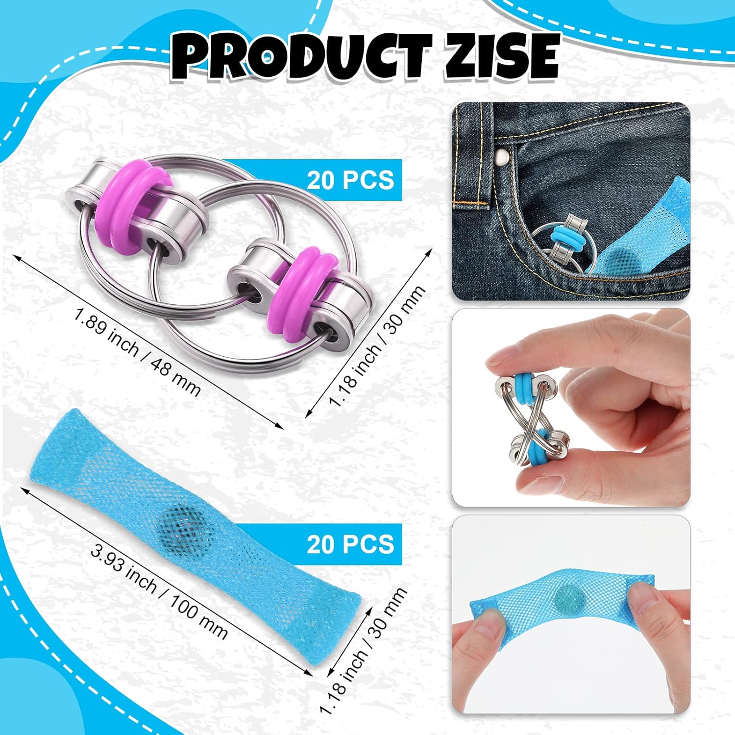 - Suitable Size and Quality Material: these fidget toys are about 4 inches/ 10 cm long (universal size), made of high density nylon; The bike chain fidget toys are approx. 1.89 x 1.18 inches/ 4.8 x 3 cm and are made of stainless steel; These chain toys are suitable for people with ADHD, ADHD, anxiety, autism, and more