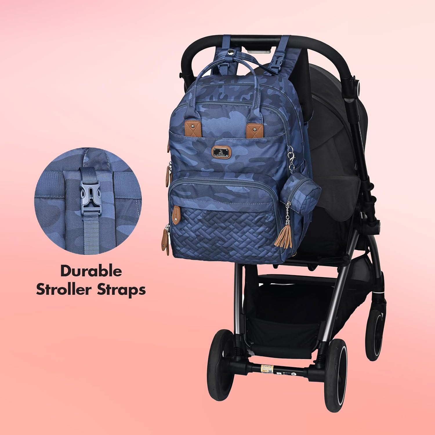 Dikaslon Diaper Bag Backpack with Changing Pad, Pacifier Case and Stroller Straps, Large Unisex Baby Bags for Boys Girls, Camo