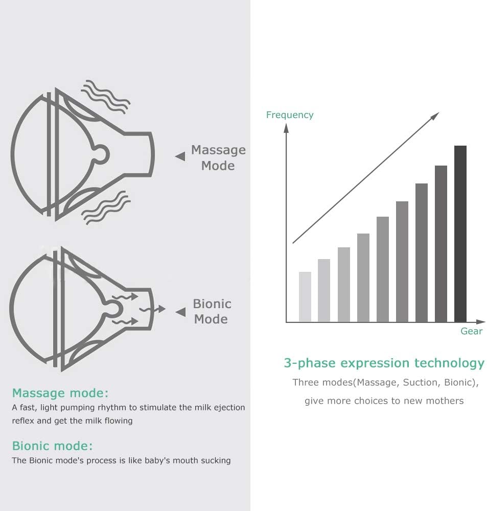 - 【High Efficiency & Easy to Use】Turn on the electric breast pump and automatically start a gentle pacing mode to stimulate milk flow. It pumps more milk in less time thanks to its 3-phase expression technology. Removable parts are dishwasher safe.