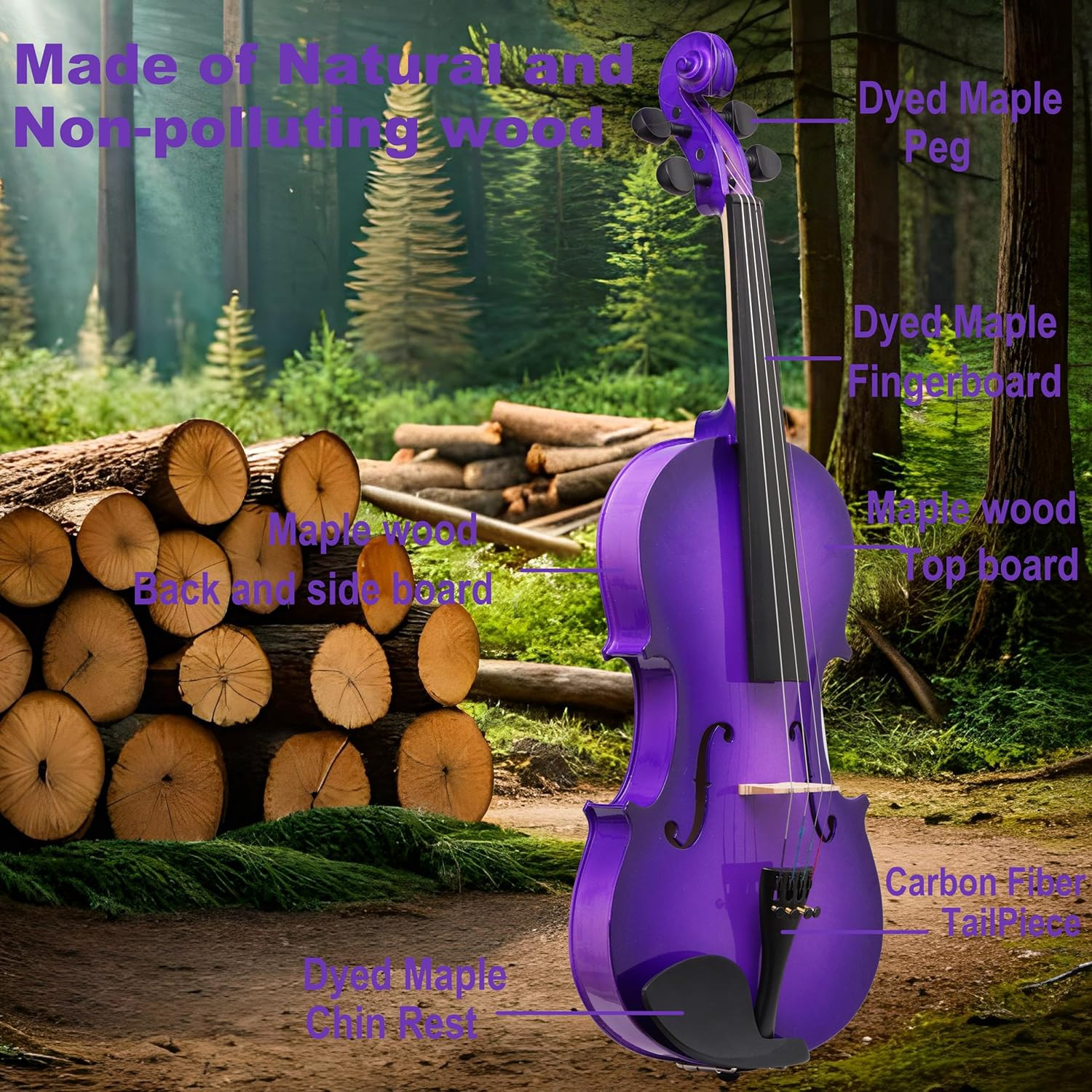 1/2 Fiddle Purple Colored Premium Violin Outfit for Beginners Adults Kids With 5 Color Fingering Tape- Handcrafted Student Beginner Violin. (Purple, 1/2)