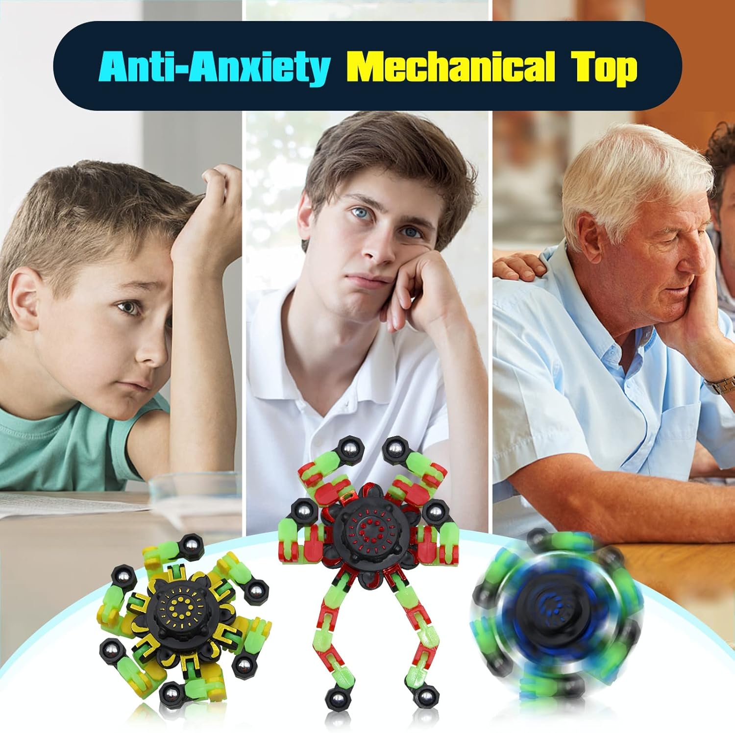 - 【Relieve Stress and Entertain】The fingertip spinning toy toy can effectively reduce stress, anxiety and can increase focus and attention by spin the fidget spinners or change the toys’ shape. This is very helpful for children with energetic, obsessive-compulsive disorder, ADHD, autism and adults with high stress and anxiety Deformable spinner .