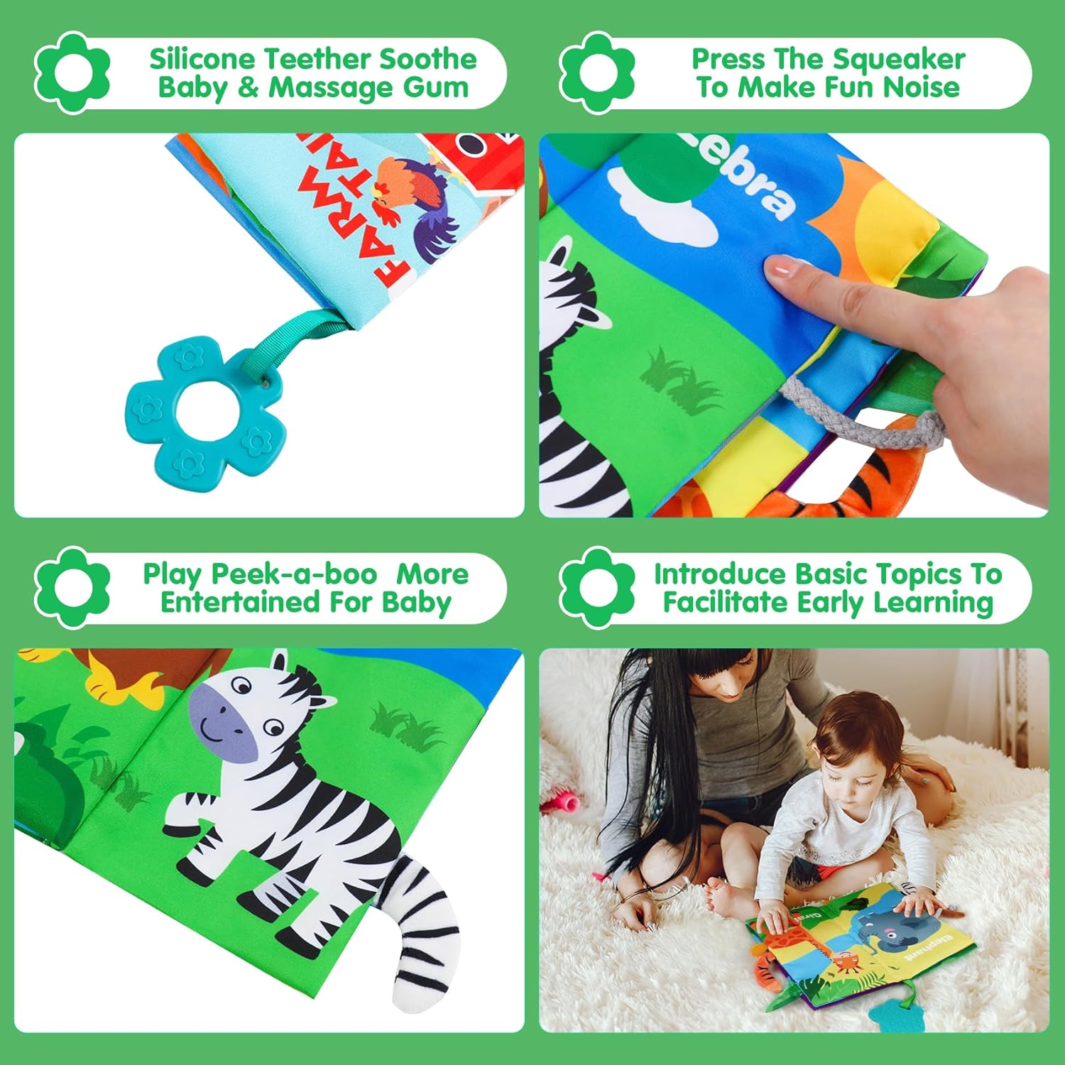 - INTERACTIVE MONTESSORI TOYS: Our cloth books feature bush animal tail and farm animal tail designs which is suitable for babys to practice touching and grasping. It is machine washable and disinfected so it also can be safe teething toy.