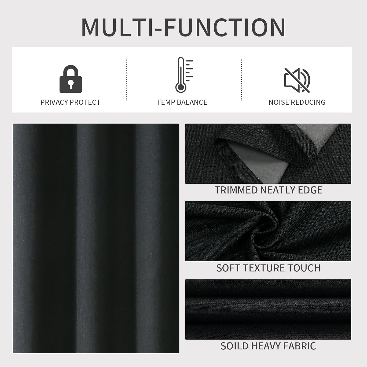 - Energy-Saving Thermal Insulation: The dense double-weave fabric of thermal insulation light blocking curtains forms a powerful thermal barrier, dramatically reducing AC/heating costs by up to 25%. Enjoy year-round temperature controlâstay cozy in winter and cool in summerâeven in extreme climates. Plus: Heavyweight blackout-lined panels dampen ambient noise by approximately 30%. Though not soundproof, they provide superior sound absorption vs. single-layer curtains for ultimate relaxation.