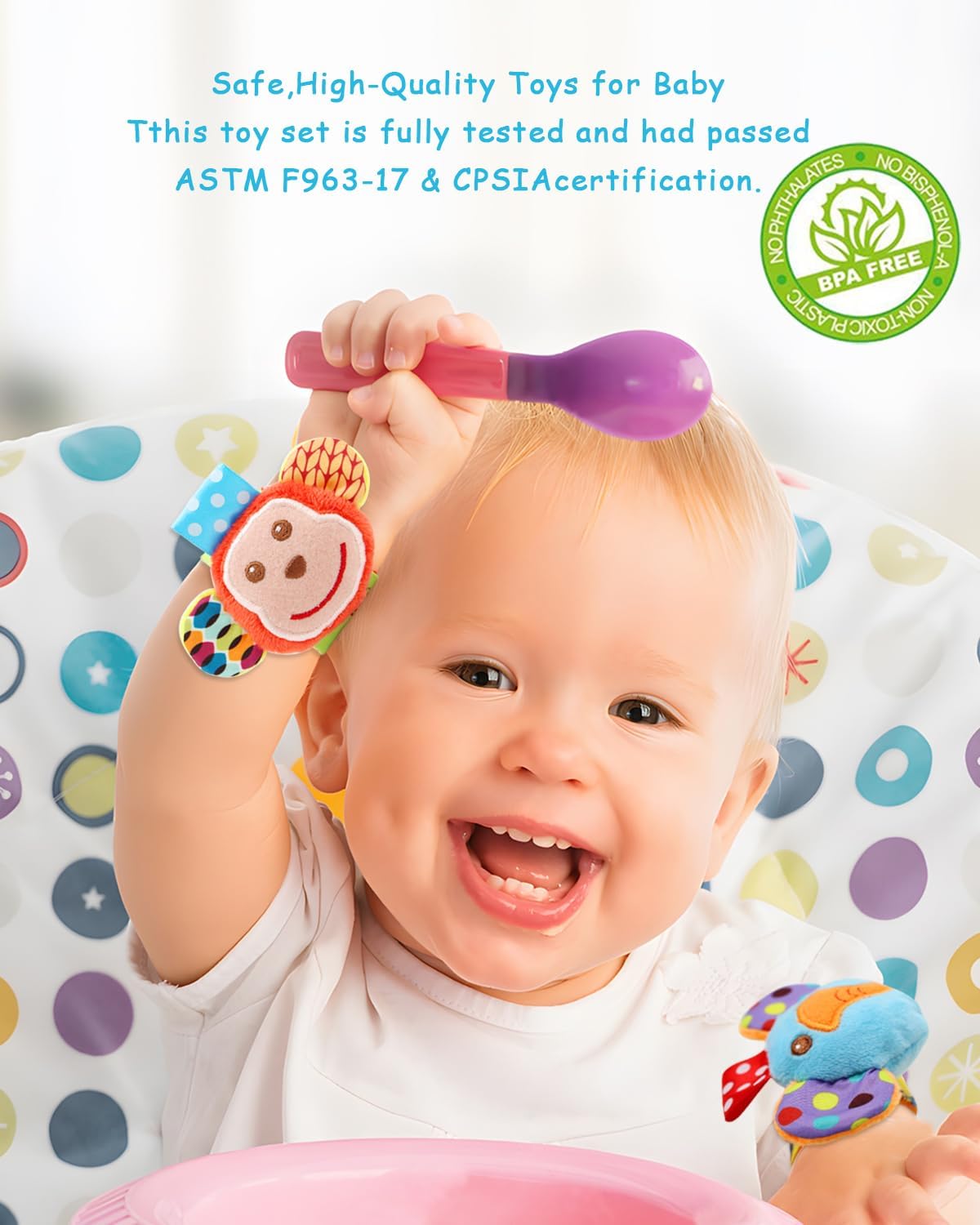 Infant Rattle Socks Toys 0 to 12 Months, Baby Wrist Rattle Foot Finder Socks Set, Birthday Holiday Present for Newborn Boy Girl 0/3/4/6/7/8/9/12/18 Months Kids Toddler, Gift Box Package (4A)