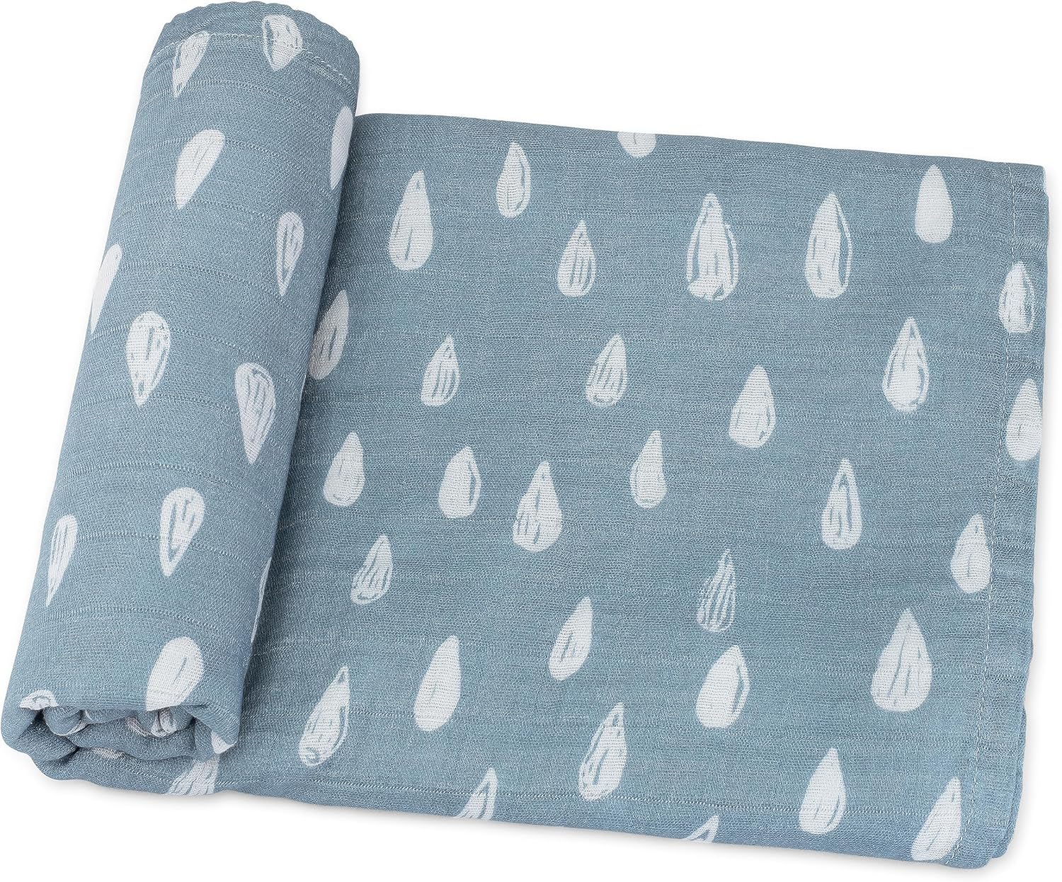 Comfy Cubs Muslin Swaddle Blankets Pack of 1 - 47 x 47 Inch Soft Cotton Baby Blanket Set, Large Multipurpose Wraps for Newborns - Self-Soothing Swaddles for Newborns - Blue Raindrops