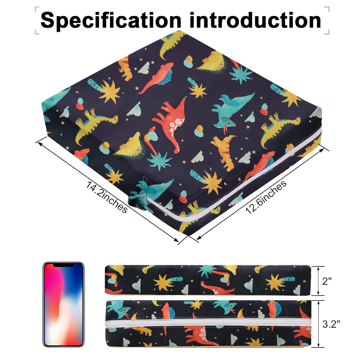- SAFETY ANTI-SLIP BOOSTER SEAT - Booster seat has two safety belts on the cushion, which can be fixed on the back and bottom of the chair, and there is anti-slip silicone at the bottom of the cushion to ensure that the cushion will not slip off. Double protection for children's safety when eating. In order to accommodate more dining chairs with a larger size, we have adjusted the size of booster chair for toddlers eating, increased the original length from 12.6 inches to 14 inches