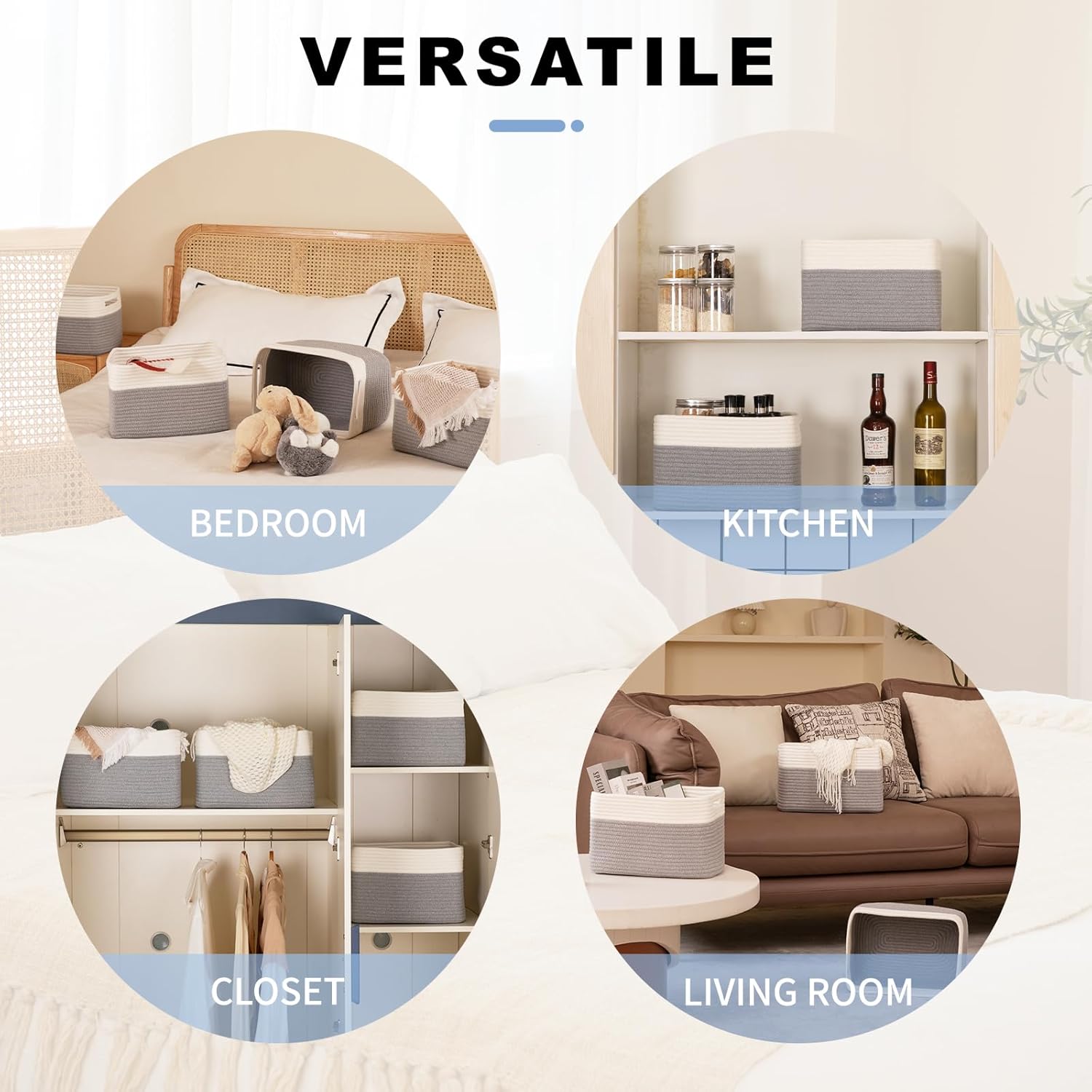- Stylish and Elegant: SIXDOVE Cotton Rope Storage Basket. The woven design of these baskets adds a touch of rustic charm to any room decor, making them a perfect addition to your living room, bedroom, bathroom, or nursery. These cube rope storage baskets enhance any room or decor of your home