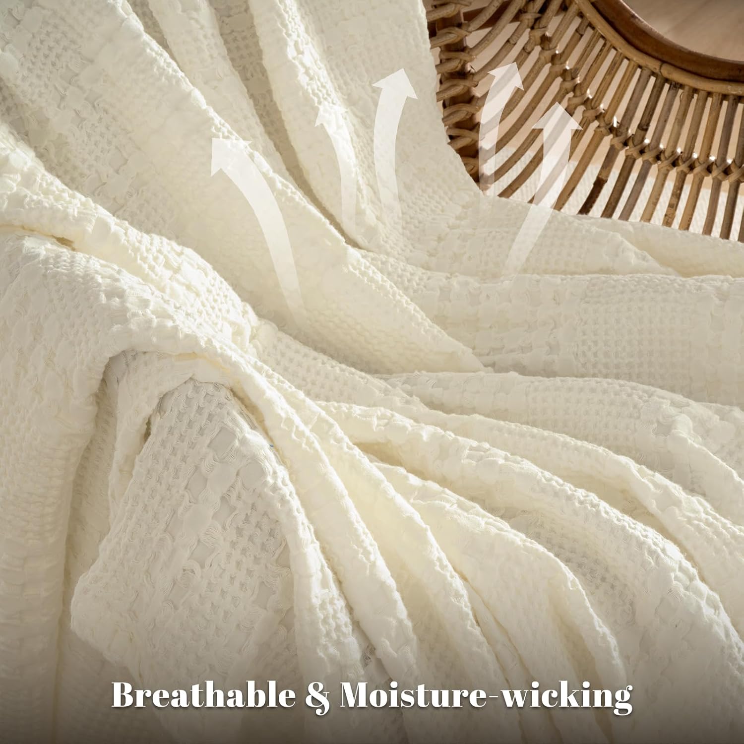 - Exquisite Waffle Weave Design: This classic and stylish waffle design boasts a three-dimensional, puffy, and elegant appearance, crafted with precision in every stitch, showcasing exquisite woven craftsmanship. The special waffle fabric promotes air circulation, temperature regulation, and moisture absorption for ultimate comfort. In addition, this stylish and sophisticated blanket, adding a touch of elegance to any room.