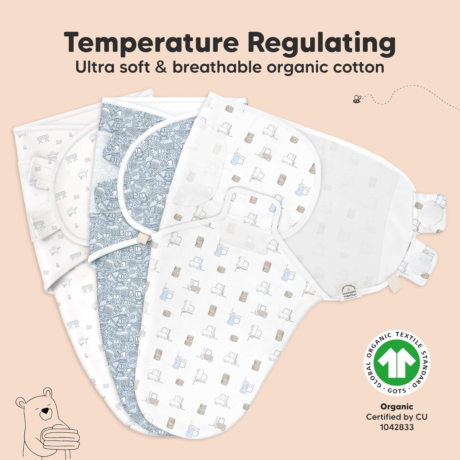 - Breathable & Temperature-regulating - Our Soothe Swaddle for newborns is made with ultra-soft Organic Cotton (GOTS Certified by CU 1042833), it is lightweight and highly breathable which makes it a highly-raved newborn swaddle sack for all seasons.