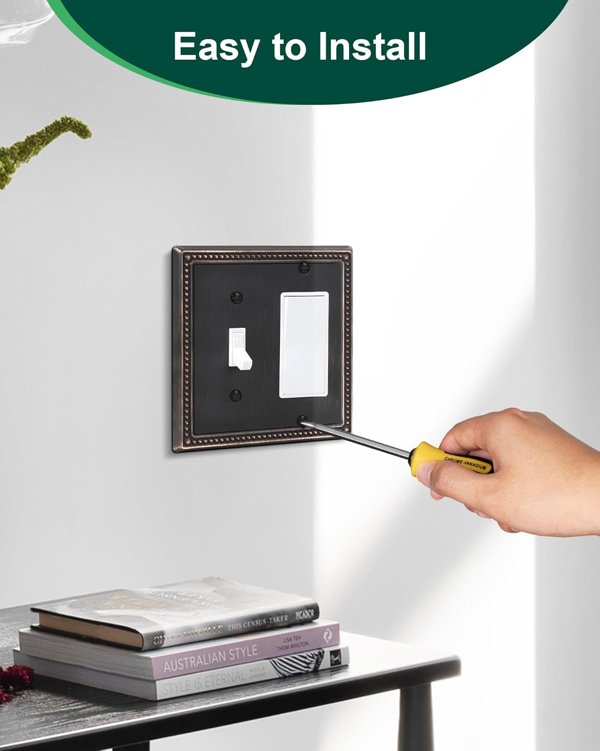 - Durable & Versatile - Constructed from thick and sturdy metal, the wall plate cover ensures long-lasting durability and sturdiness. It is resistant to high impact, tarnishing, and corrosion, making it not easy to break. Rest assured that this Combo Toggle/Decorator switch plate covers will remain a stunning addition to your home for years to come.