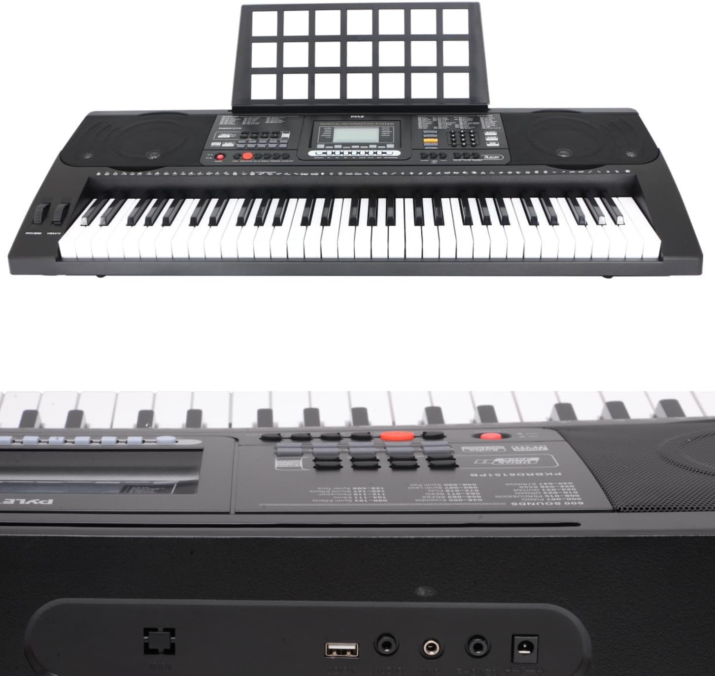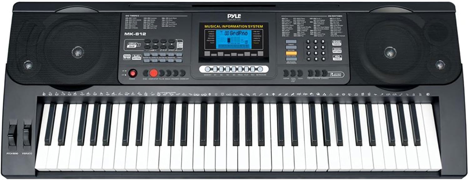 Pyle 61-Key Digital Karaoke Keyboard Piano β Portable Electronic Music Keyboard with Stand, Stool, Mic Input, Stereo Speakers, Record & Playback, Teaching Functions & Case Bag