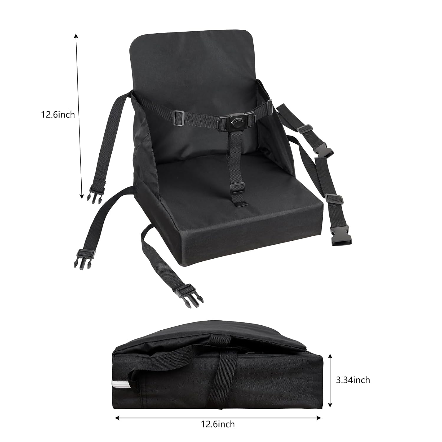 - [Safe And Non-slip] The booster seat dinner table is 12.6 x 12.6 x 3.34 inches. There are adjustable straps on the child booster seat for dining table to prevent the booster cushion from sliding forward or left or right. The chair booster makes sure that the booster seat will not slip off so that children can eat safely.