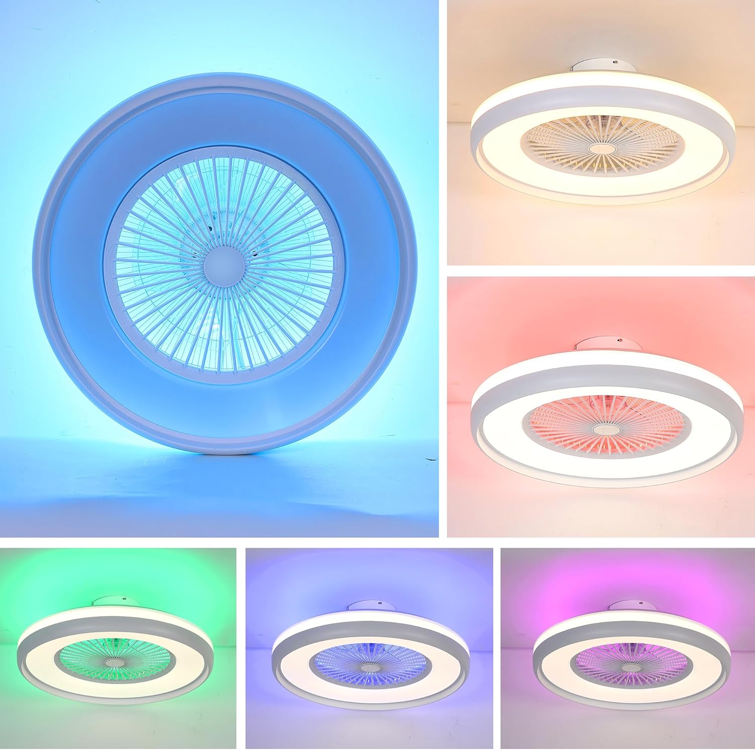 - Dimmable & Light Multicolor: This smart LED ceiling fan light offers millions of colors of light, making it a personalized piece and subtle accent for your bedroom. The smart LED ceiling fan light supports adjustment from warm light (2700K) to daylight (6500K) and 10%-100% brightness adjustment. Ambient light adjustment: night light, RGB mood lighting, RGB cycle mode