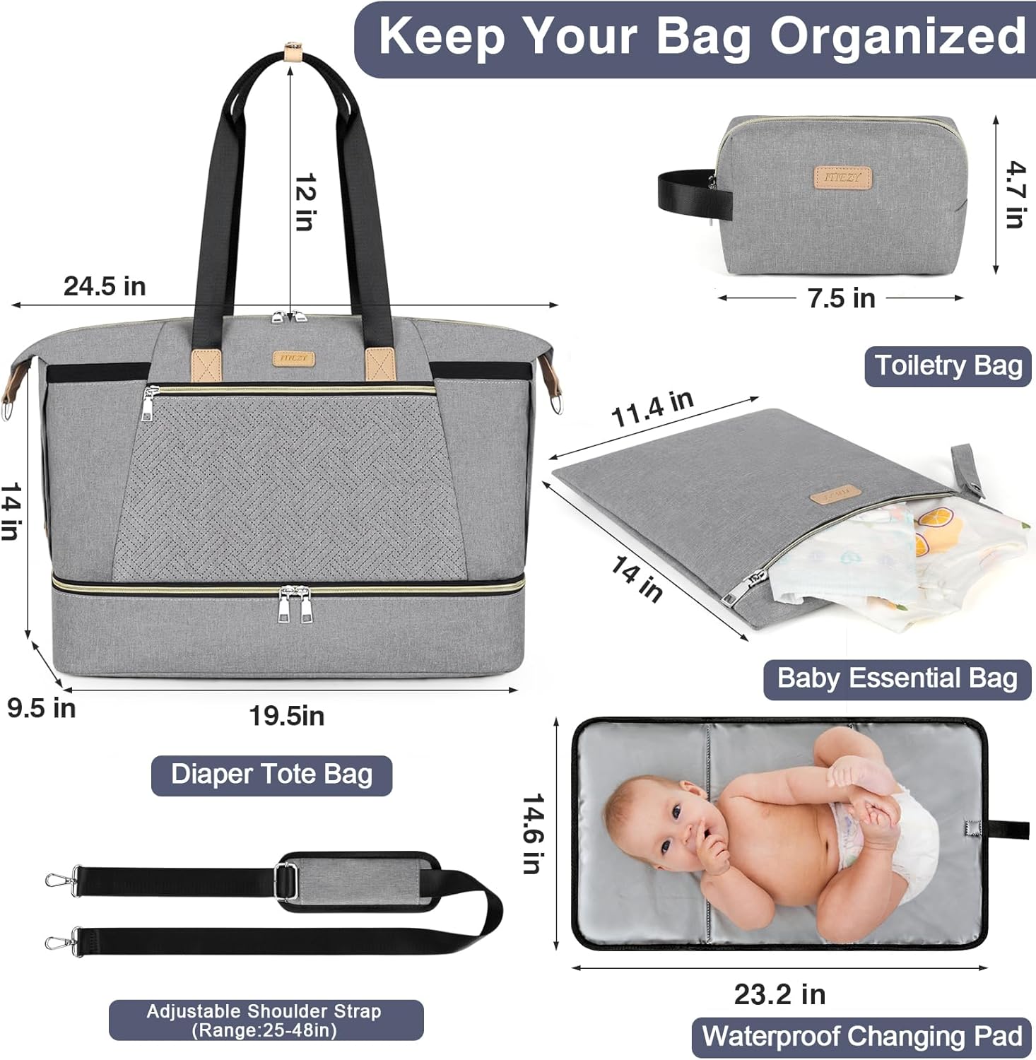 ITIEZY Diaper Bag Tote for Baby - Large Mommy Bag with Portable Changing Pad Pacifier Case, Hospital Bags Travel Baby Bag