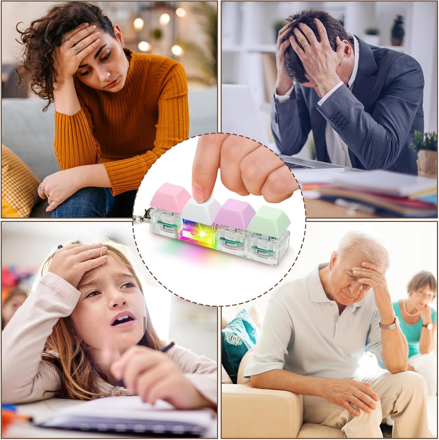 - Relieve Stress: This fun keyboard keychain fidget toy is great for everyone. It makes this soft click sound like you hear using your keyboard. Provides a fun and engaging way to relieve stress and anxiety while working or typing, and is exercise for typing wrist pain,making it the perfect tool for improving focus and productivity