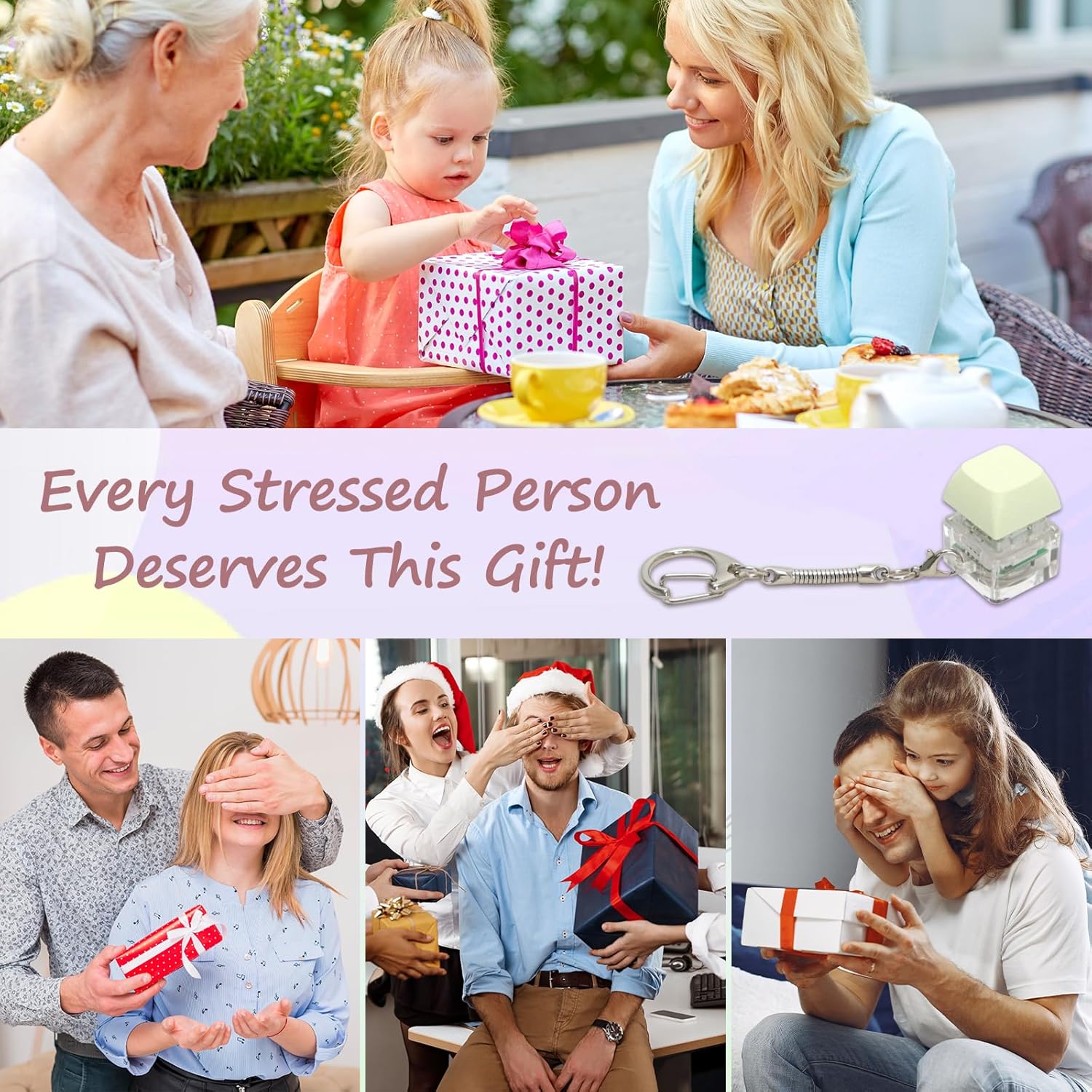 - Relieve Stress: This fun keyboard keychain fidget toy is great for everyone. It makes this soft click sound like you hear using your keyboard. Provides a fun and engaging way to relieve stress and anxiety while working or typing, and is exercise for typing wrist pain,making it the perfect tool for improving focus and productivity