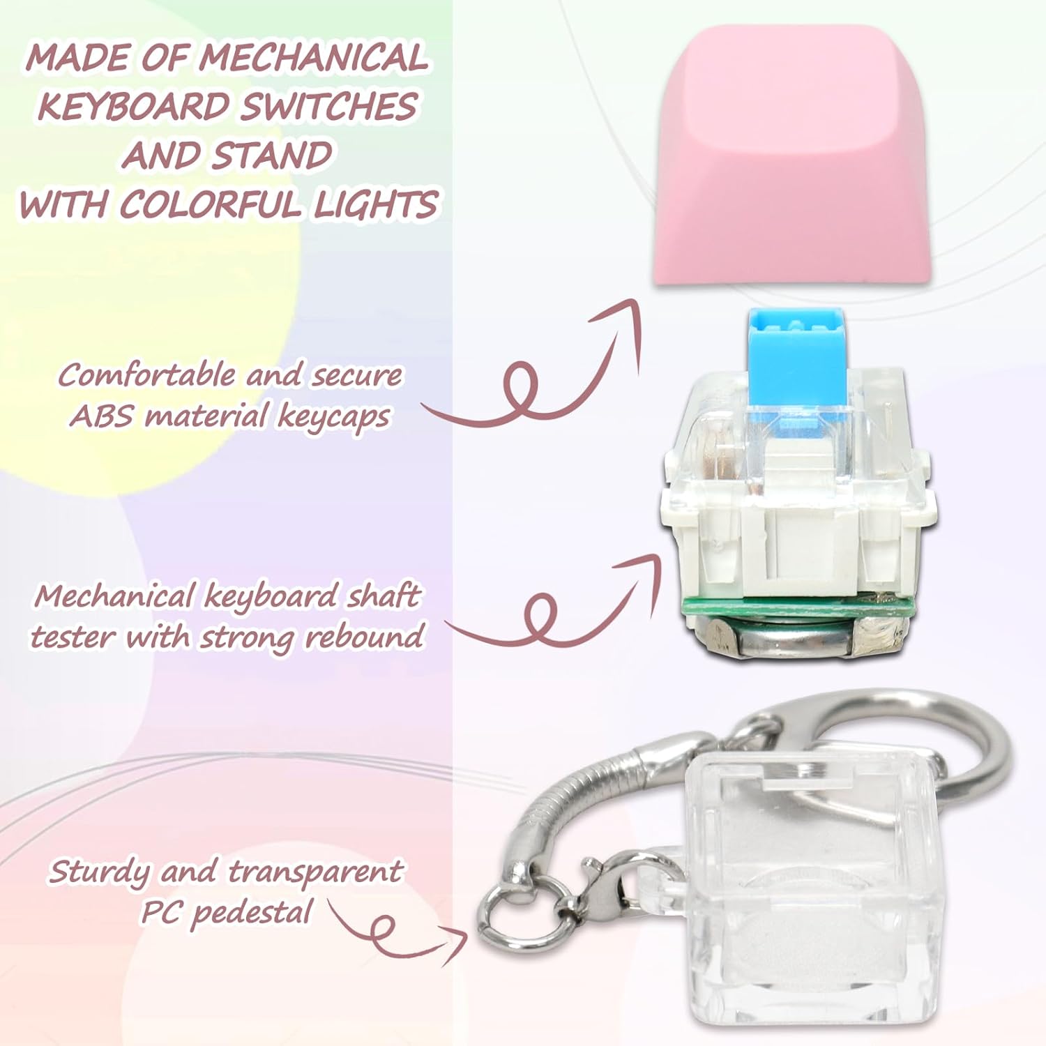 - Reliable Material: Crafted from high quality materials, this keyboard fidget keychain offers reliable performance. The key cap is made of ABS material for comfort and safety, while the pedestal is constructed from sturdy PC. The zinc alloy keychain ensuring that it's built to last for a long time. Plus, the matte keycap feels fantastic to the touch, providing endless hours of tactile enjoyment