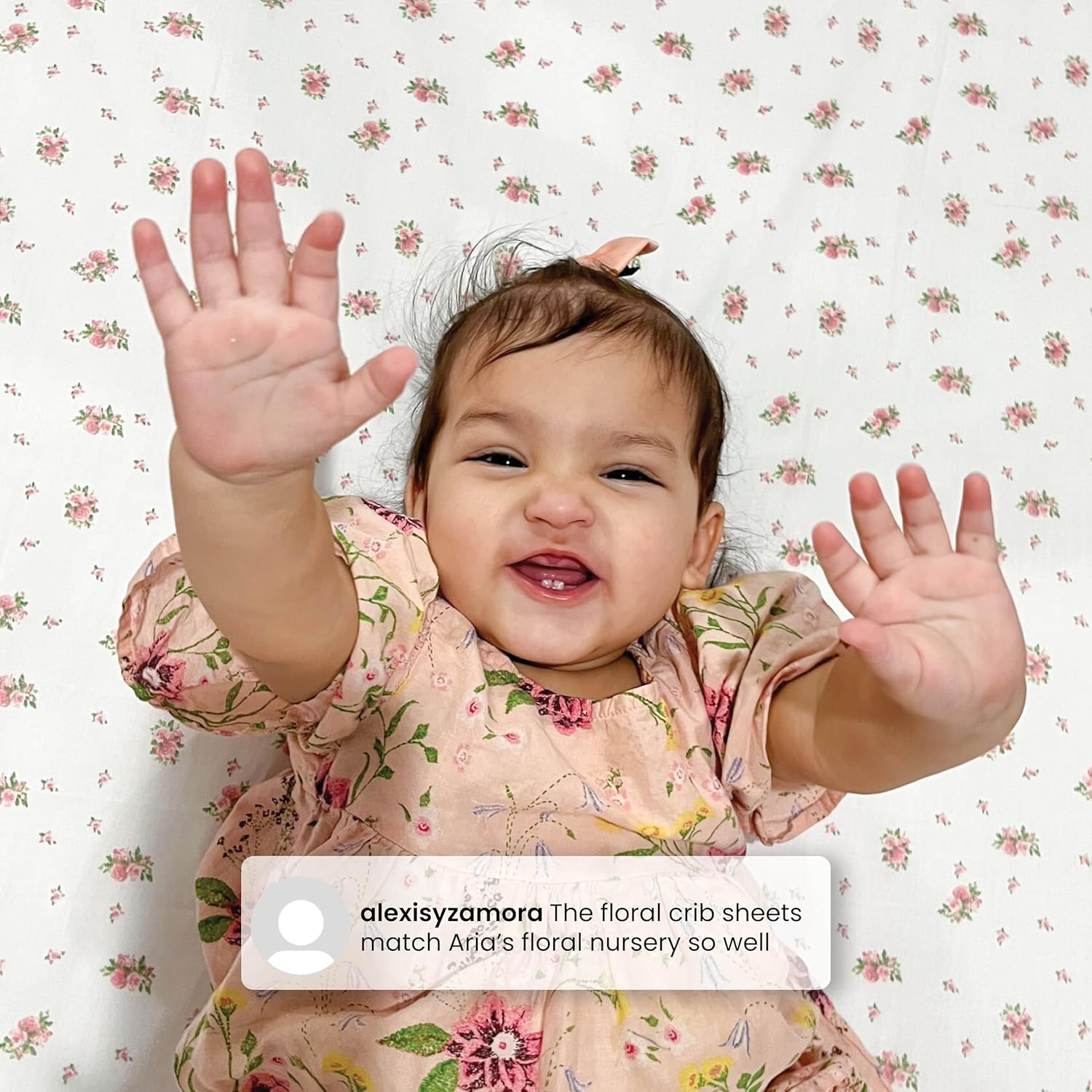 Delta Children Fitted Crib Sheets for Girls and Boys - Crib Sheet for Standard Crib and Toddler Mattresses - 28x52 Inch (Pack of 3), Pink Floral