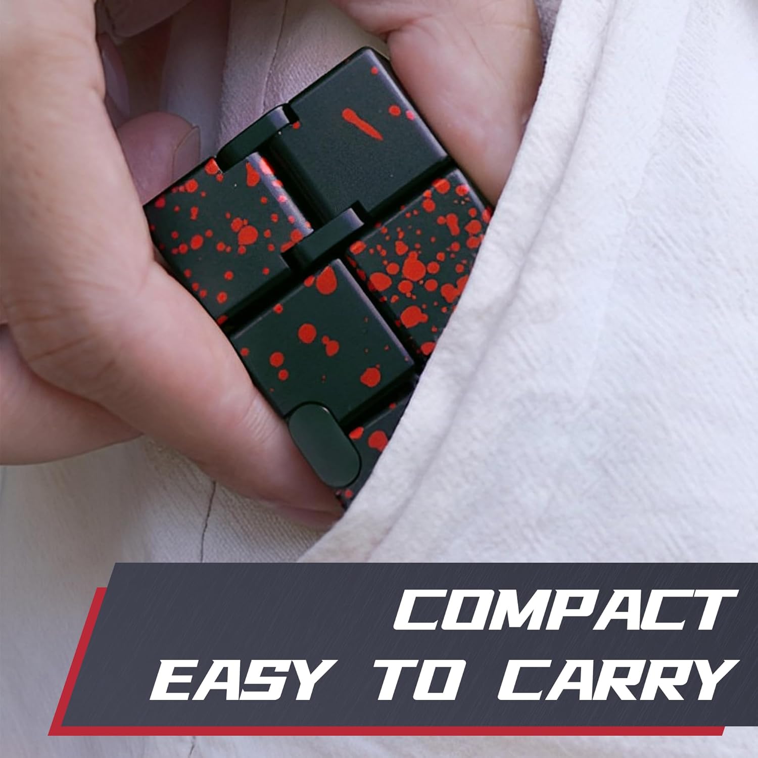 Infinity Cube Fidget Toy, Metal Anxiety Relief Toys Fidget Cube for Adults, ADHD Desk Toys for Kids Boys Girls for Stocking Stuffers, Easter Basket Stuffers (Black Red)