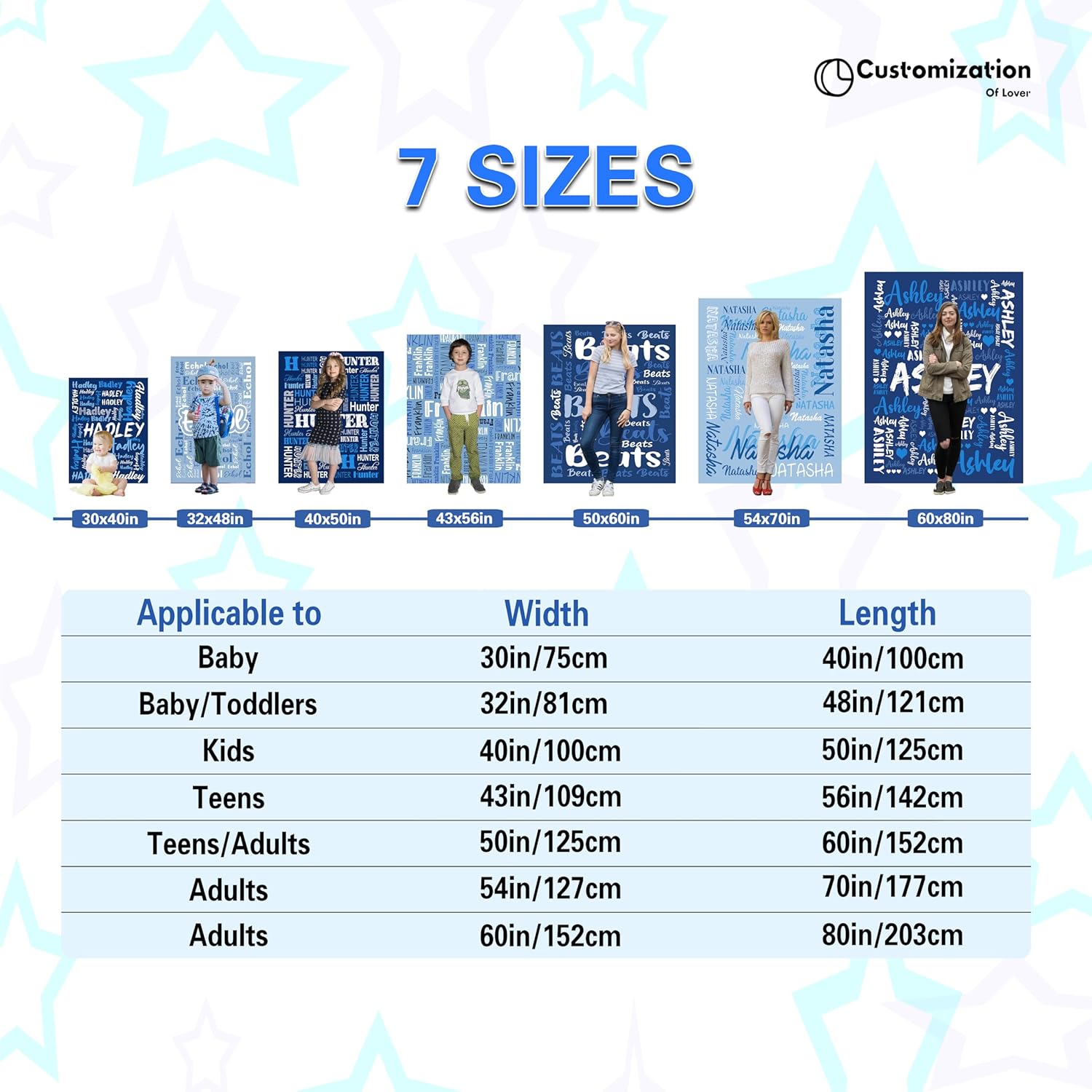 - Variety of Colors - Custom name blanket. No matter what name you provide, we will print them well on your personalized blanket, which will be the most perfect gifts for Birthday, Christmas, Wedding, Anniversary Valentine's Day.
