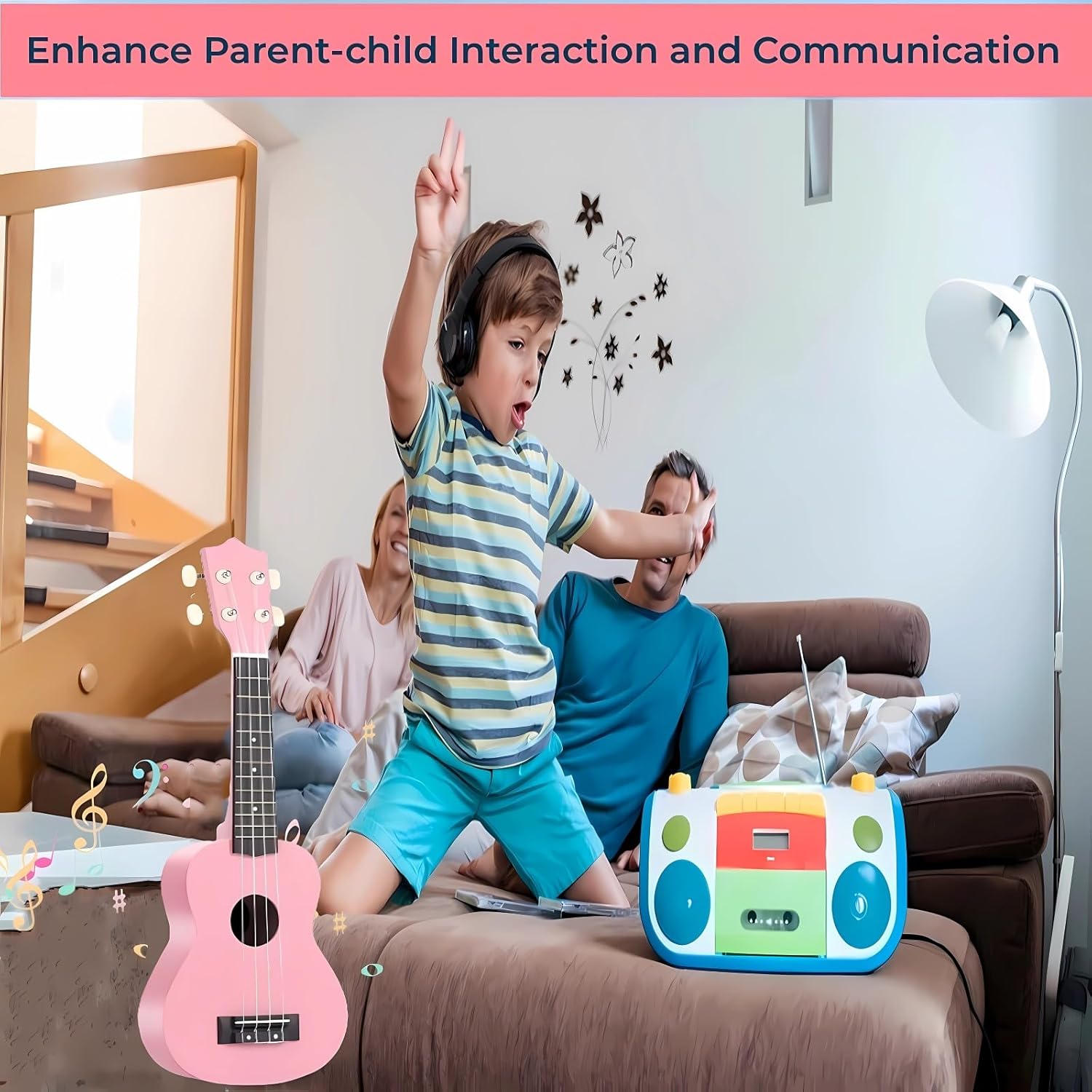 21 Inch Carbon Fibre Kids Toddler Child Children Acoustic Guitar Ukulele Musical Instruments Ideal for 3-9 Year Old Boys Girls Gifts (Pink)