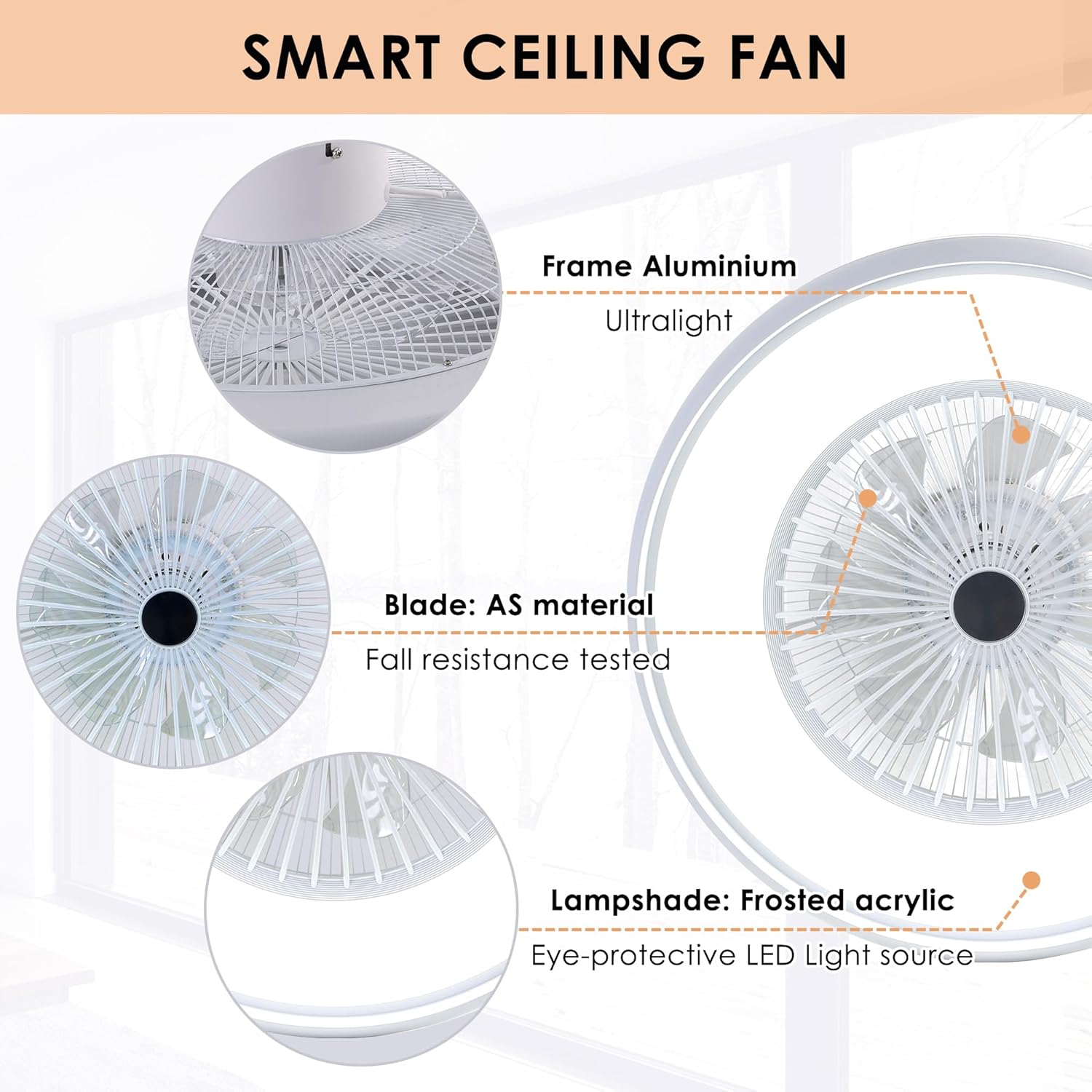 24" Bladeless Ceiling Fan with RGB Light Remote, Smart LED Ceiling Fans with Voice/App Control, Modern Low Profile Dimmable Light Ceiling Fan for Bedroom Living Room White