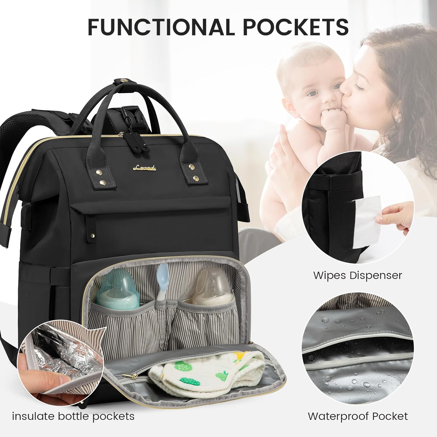 - 【Baby-Centric Functional Pockets】: This mommy bag is crafted with the needs of your baby in mind. It features 2 insulated bottle pockets that can fit various bottle sizes, ensuring that your baby's milk stays at the right temperature. An added waterproof wet pocket ensures other items remain dry. Plus, there's a handy tissue holder and a cup holder for added convenience on-the-go.