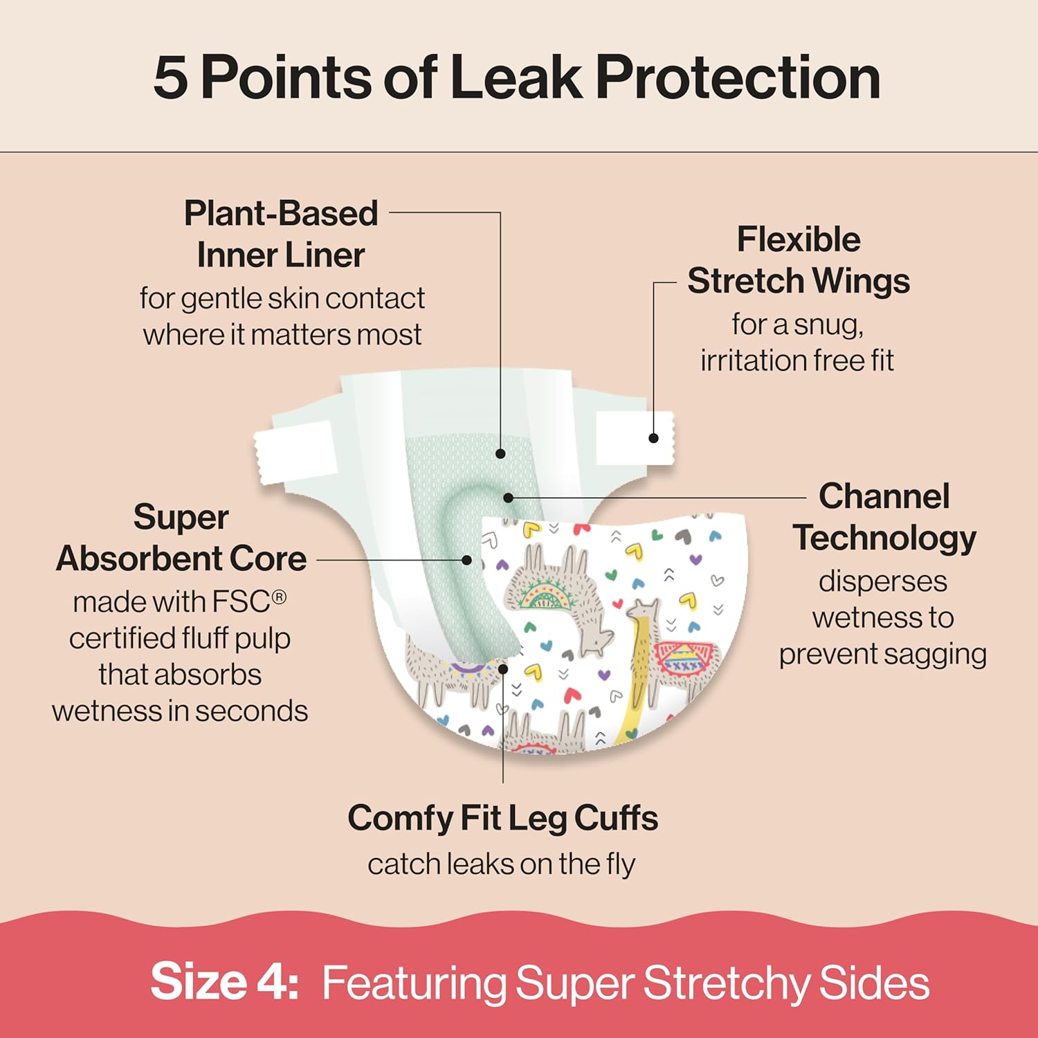 The Honest Company Clean Conscious Diapers for Delicate Skin | Up to 100% Leakproof | Hypoallergenic, Fragrance Free | Girl Prints | Club Box, Size 4 (22-37 lbs), 54 Count (Prints May Vary)