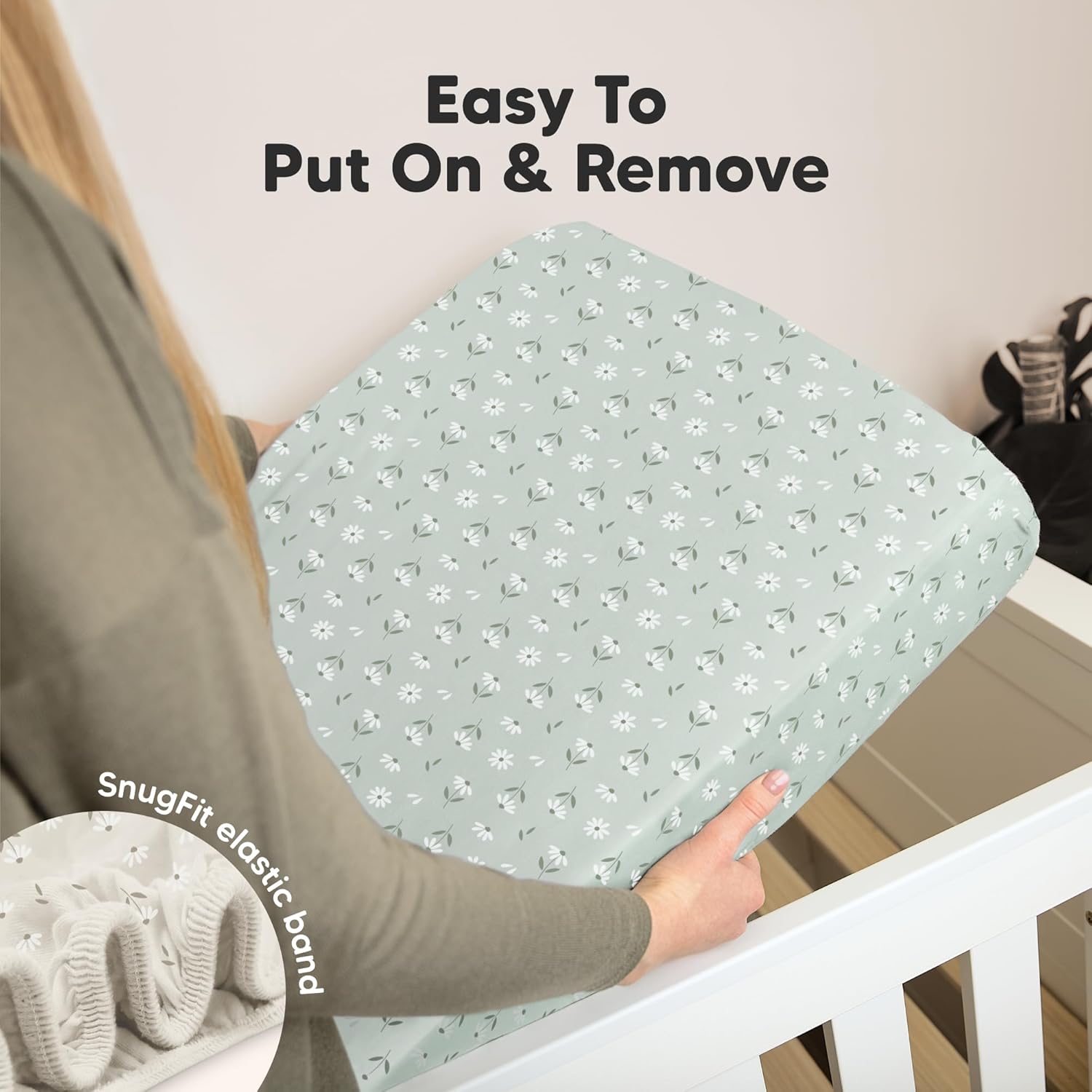 KeaBabies 2-Pack Organic Crib Sheets for Boys, Girls - 52x28 Fitted Crib Mattress Sheet Neutral, Breathable Jersey Cotton Cover for Baby Bed, Toddler Mattress, Soft & Cute Prints (Daisies)