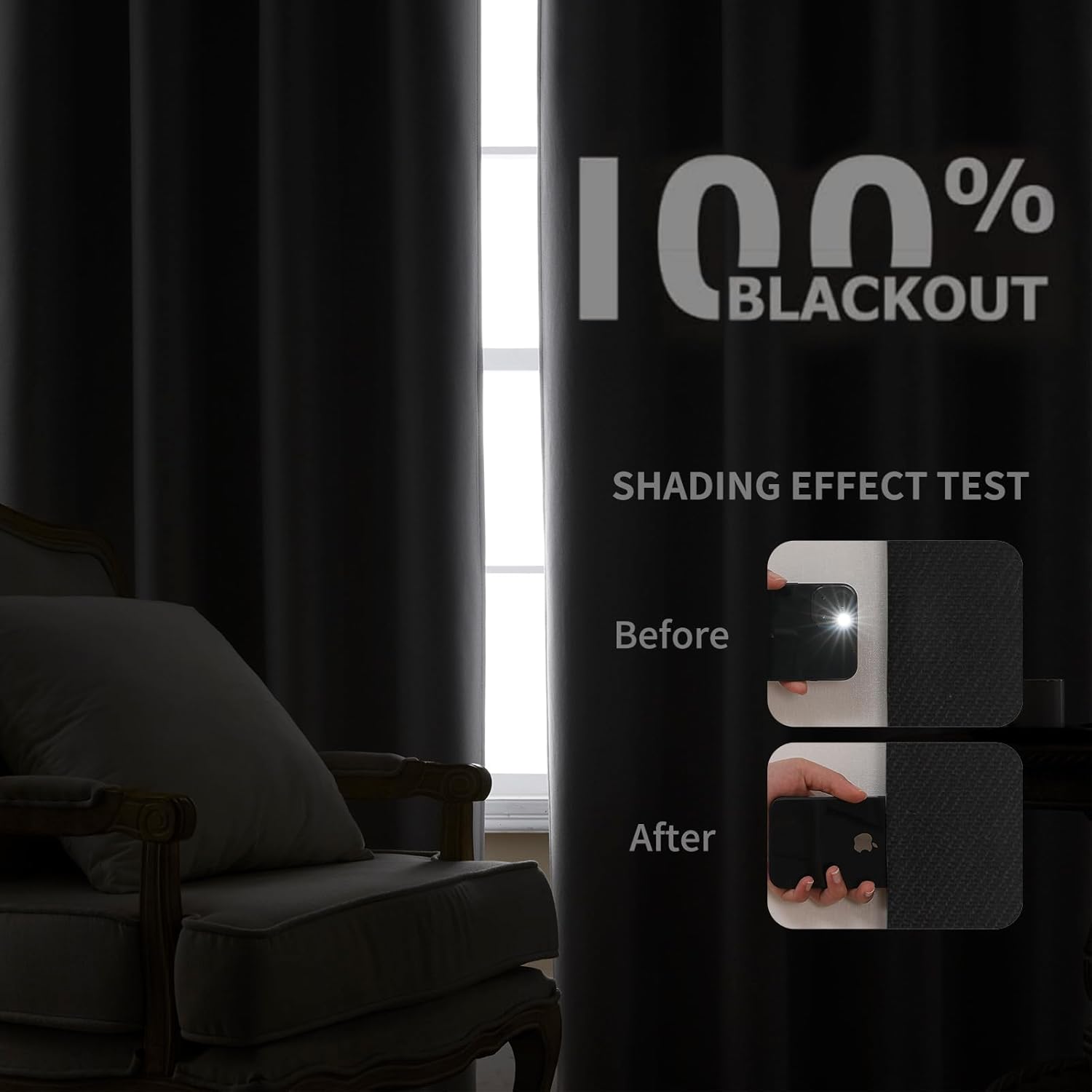 - 100% Blackout: Joydeco blackout curtains are double layered with liner on the back. The innovative double woven textured fabric can block out entirely 100% sunlight and harmful UV ray (deep colors work better), keeping room cooler against heat in summer and retaining the room warm in winter.