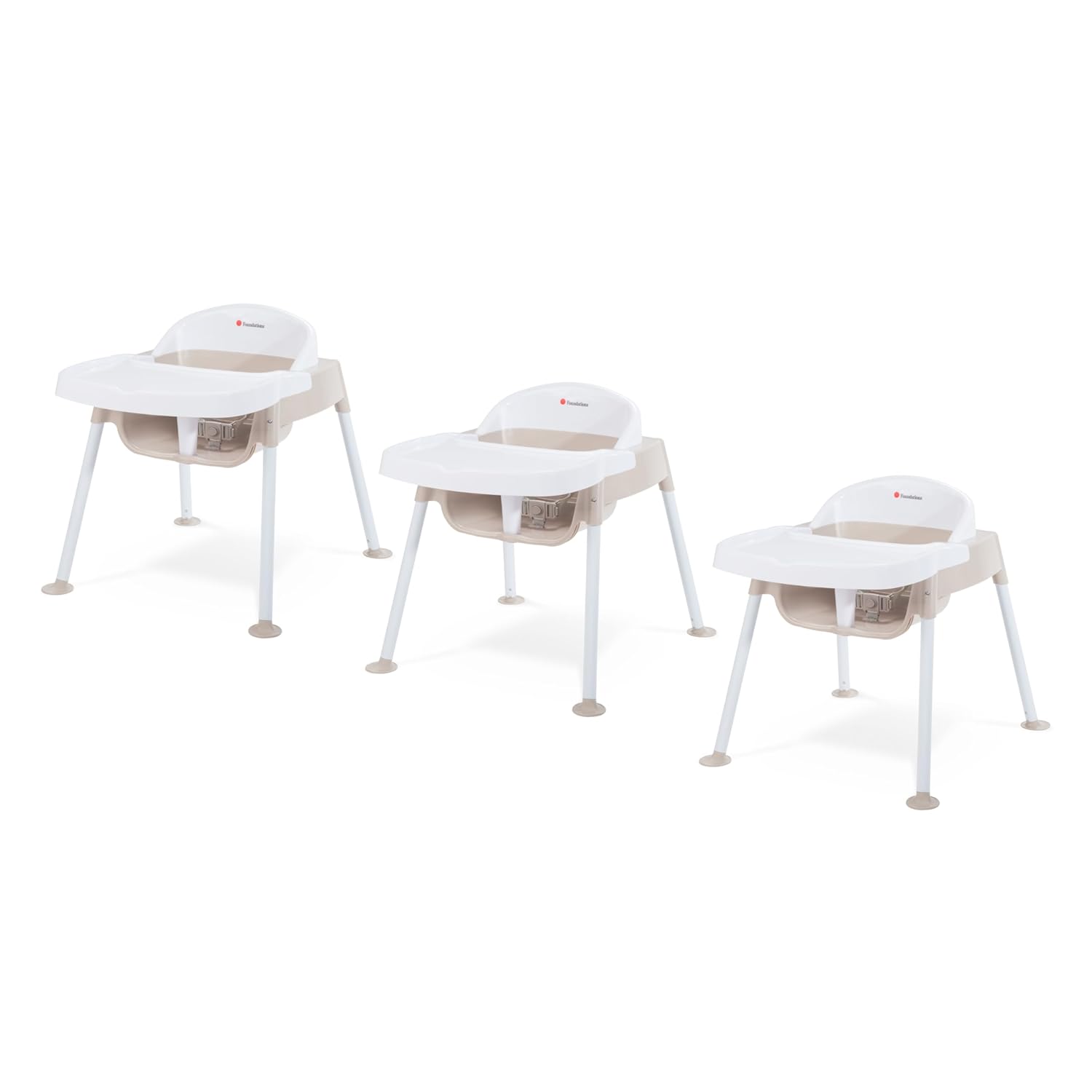 Foundations Secure Sitter Feeding Chairs Multipack, No-Tip Feet, 3-Point Adjustable Harness, Removable Tray, Easy to Clean, Stackable Feeding Chairs, 3 Pack (11 inch)
