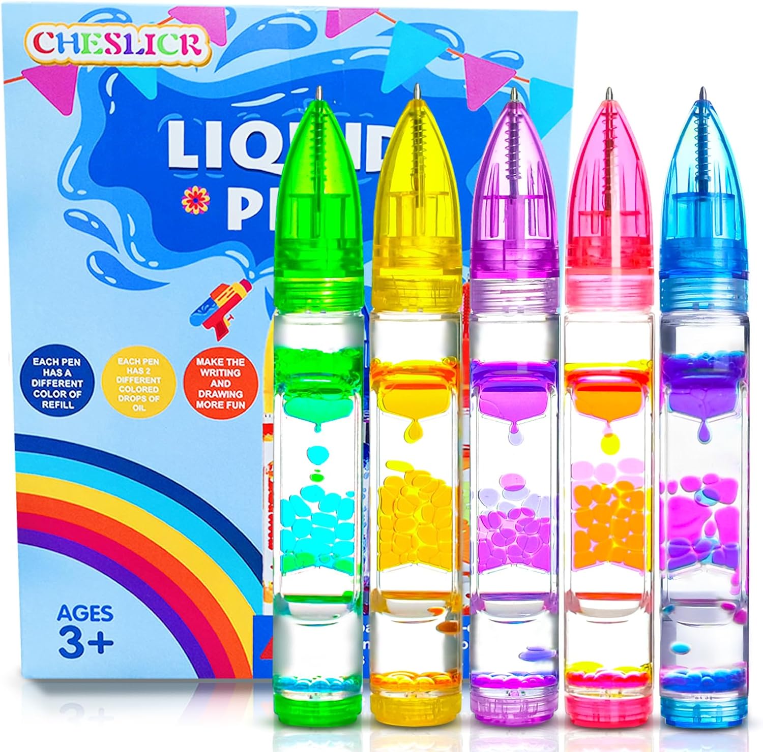 - Colorful Liquid Pen : This 5-pack liquid sports pen uses a small hourglass design and a beautiful and smooth color. With the passage of time and gravity, bubbles of bright and colorful liquid slowly fall. Give children a unique visual experience and mental relaxation.