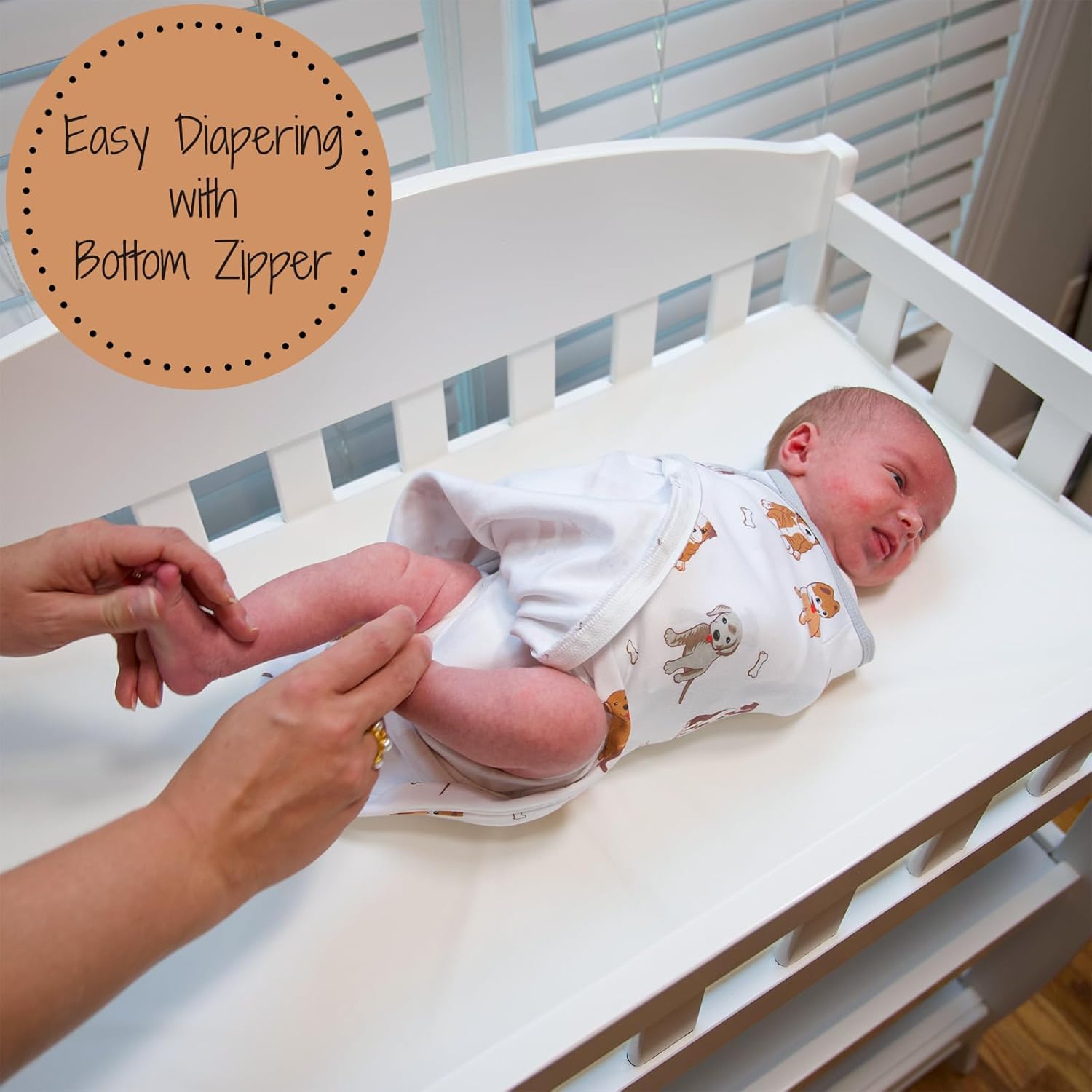 LollyBanks Baby Swaddles, 100% Organic Cotton Swaddles for Newborn Boy and Girl, 0-3 Months Swaddle Sacks with Easy Change Zipper, Swaddle Neutral Baby Registry (Puppies Print)