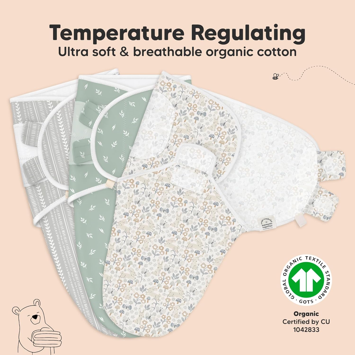 KeaBabies 3-Pack Organic Baby Swaddle Sleep Sacks - Swaddles for Newborns, Infant 0-3 Months, Baby Girls, Boys, Soft & Snug Newborn Sleep Sack, Nursery Swaddling Blankets (Prairie)