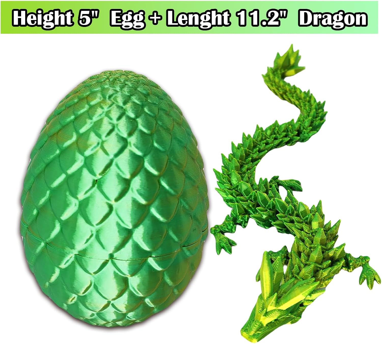- 【Unique Design】11.2 Inch dragon fidget toy and Dragon Egg Toy Carefully crafted using amazing 3D printing technology, our dragon fidget toy can be used as an educational tool to inspire imaginative stories and create learning opportunities while also inspiring DIY creativity for endless exploration. The dragon egg's threaded design allows the 3-d printed dragon figurine to be safely stored inside,Making it the perfect dragon decor piece for your home or office.