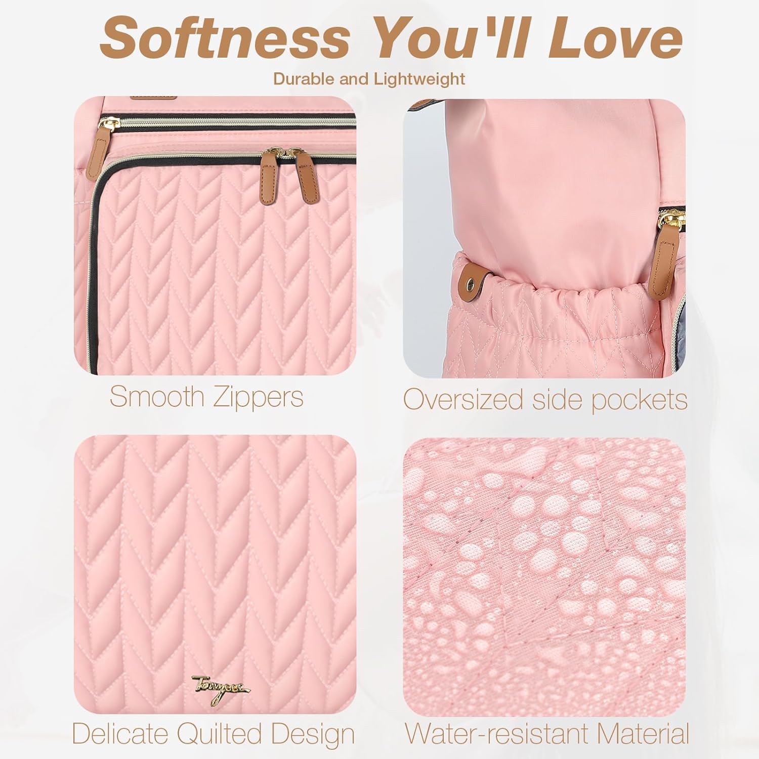 - Quilted Materials:Tonyeee diaper bag with 3D herringbone nylon quilting,achieve a perfect blend of practicality and fashion. While studded feet in the bottom keep the bag clean and off the ground