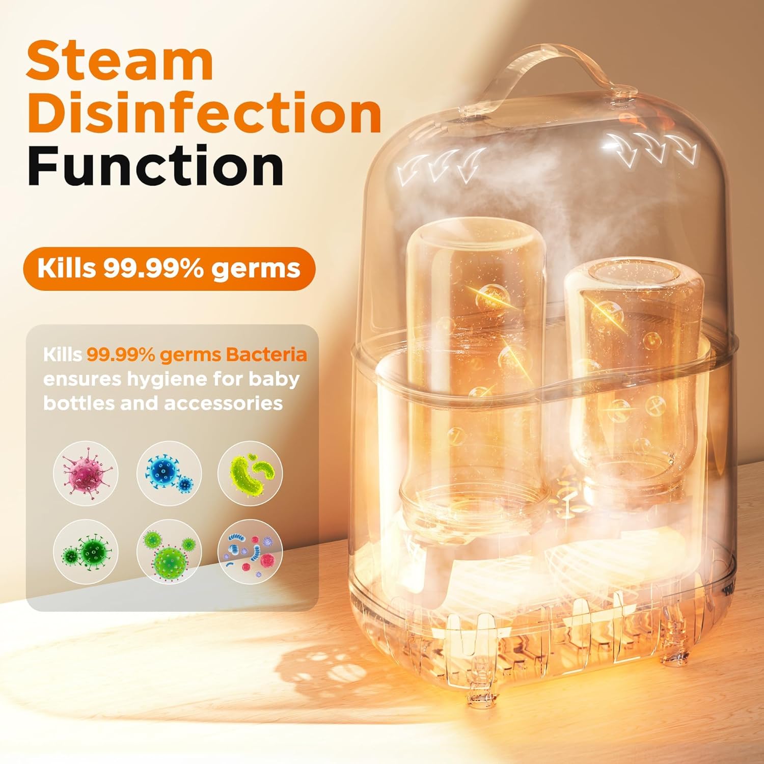 - Efficient Steaming: Use high-temperature steam to maintain bottles and baby food jars in a clean state, ensuring optimal hygiene. Can steam multiple pacifiers and bottles simultaneously, enhancing your baby's health and safety