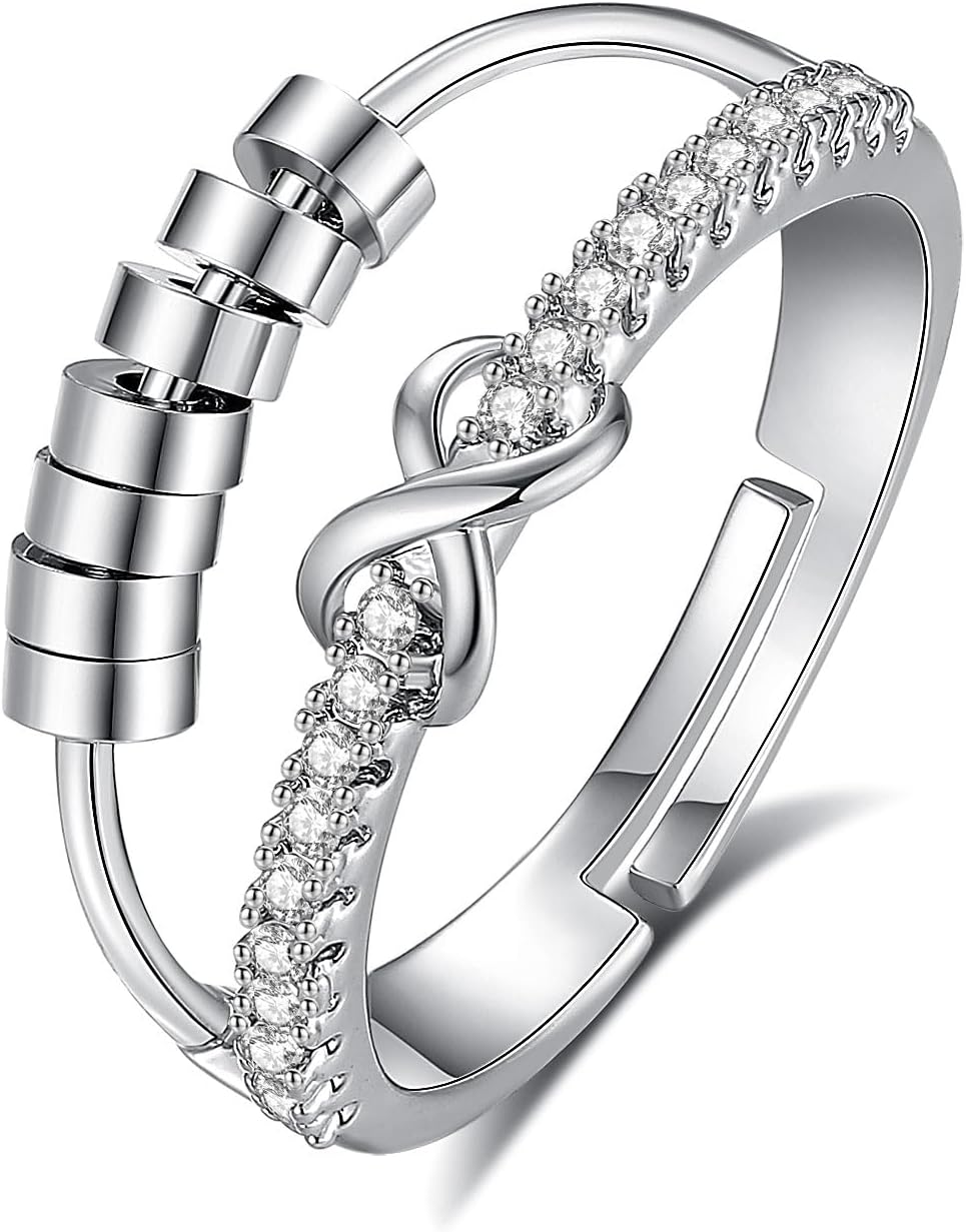 INFUSEU Funny Spinner Fidget Rings for Women Girls Anti Anxiety Stress Worry, Adjustable Size