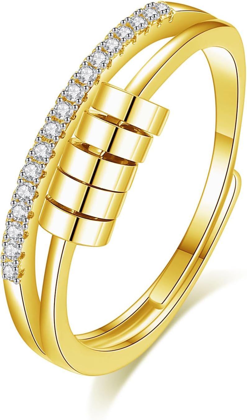 INFUSEU Funny Spinner Fidget Rings for Women Girls Anti Anxiety Stress Worry, Adjustable Size