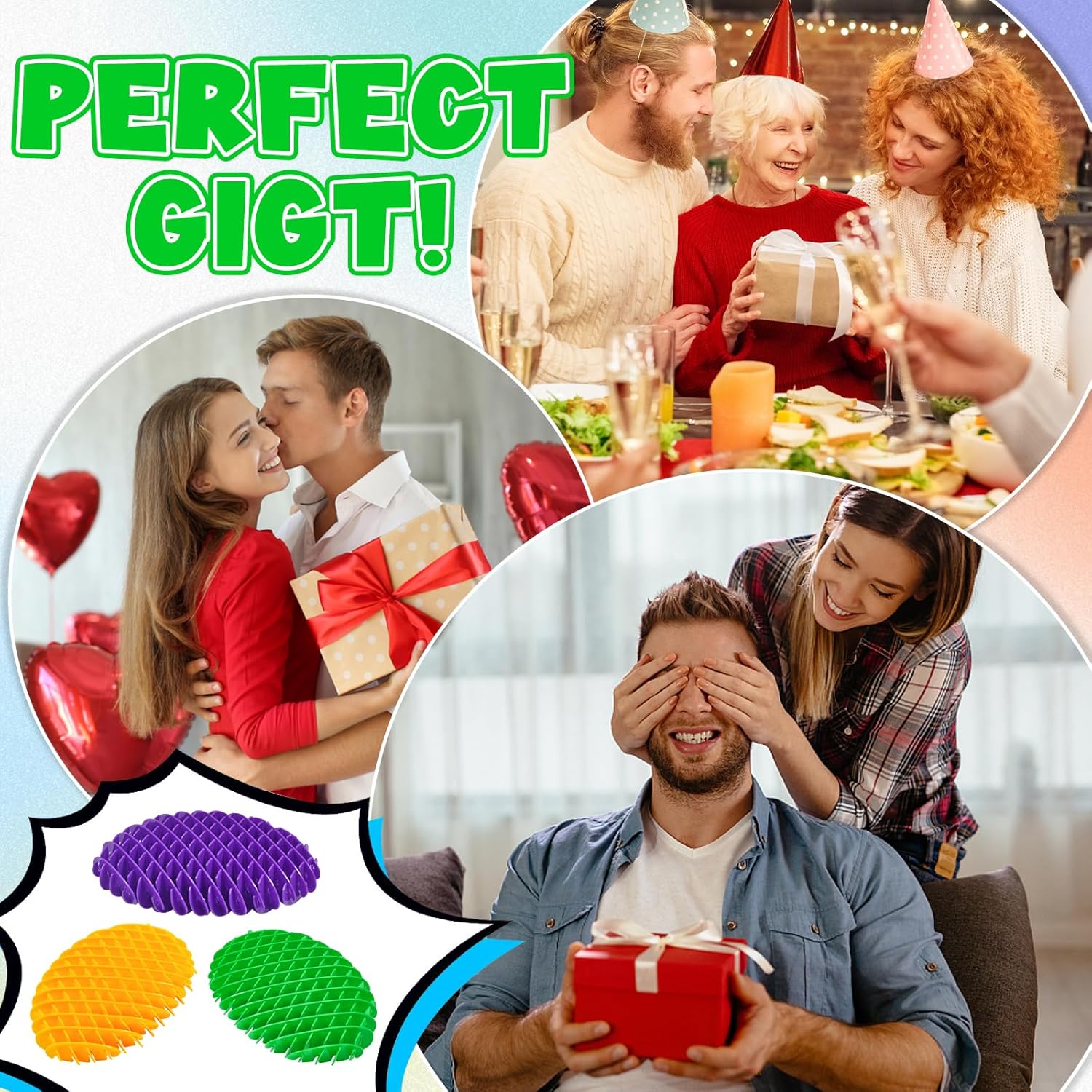 - 【RELEASE ANXIETY AND STRESS】This toy is a perfect choice for stress relief as that is comfortable to touch, it can help you feel calm and relaxed wherever you are. We offer yellow, purple and green in each package, bright colors also help release stress.